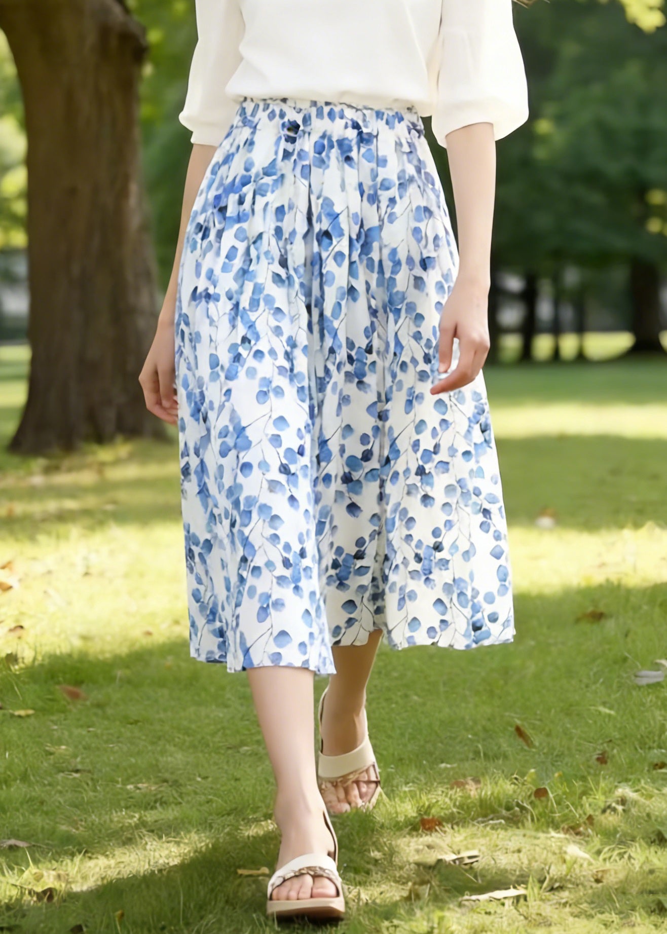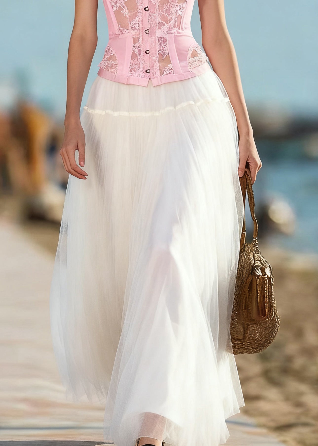 Loose Beige Hollow Out Drawstring Cotton Skirts Summer