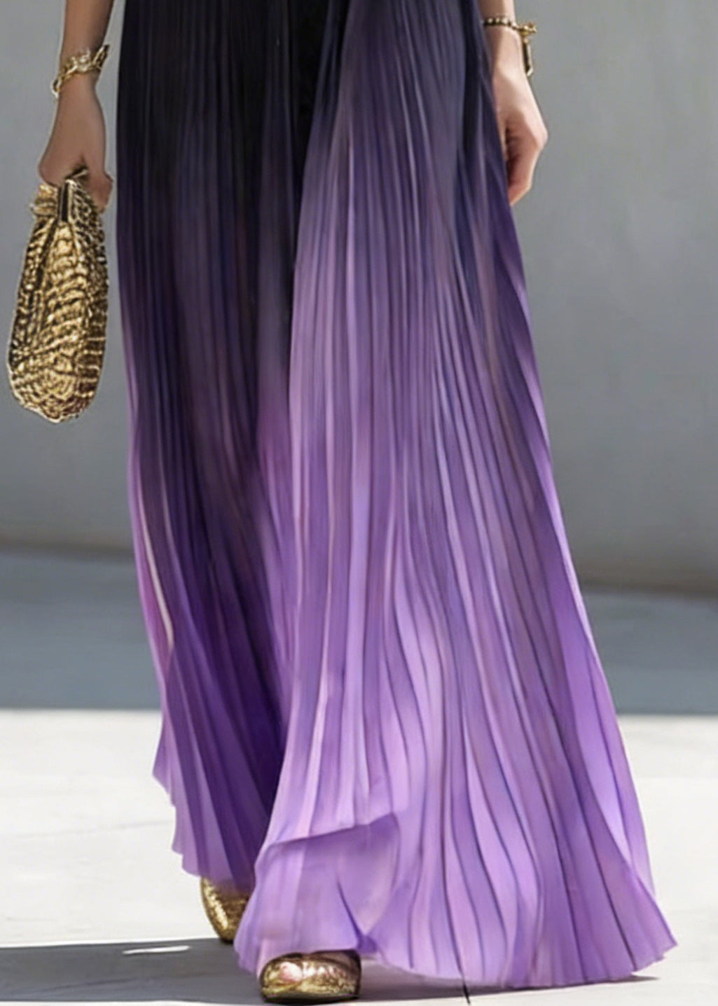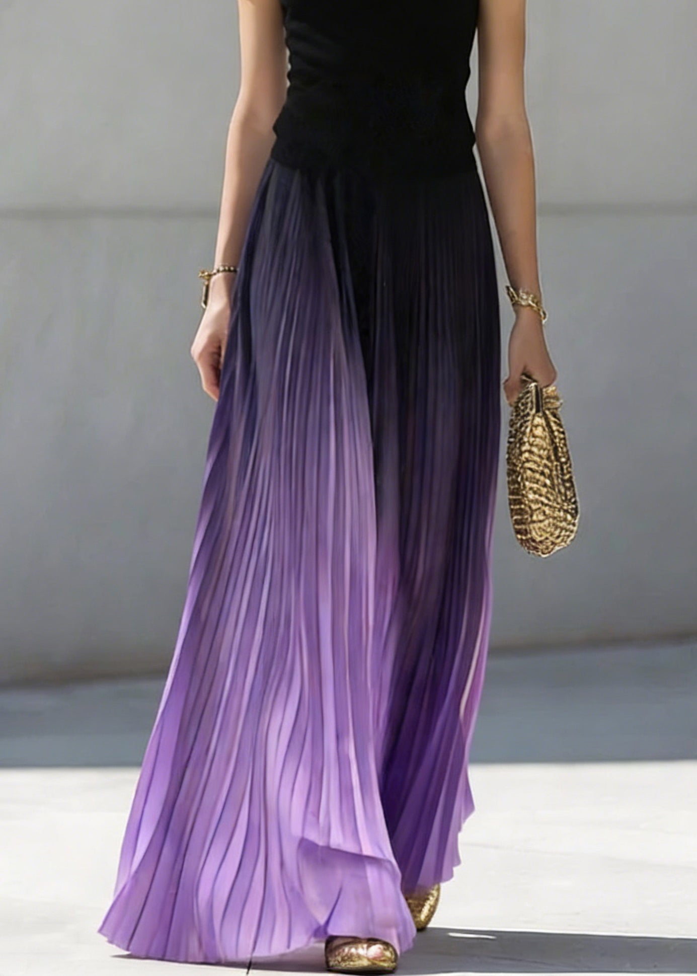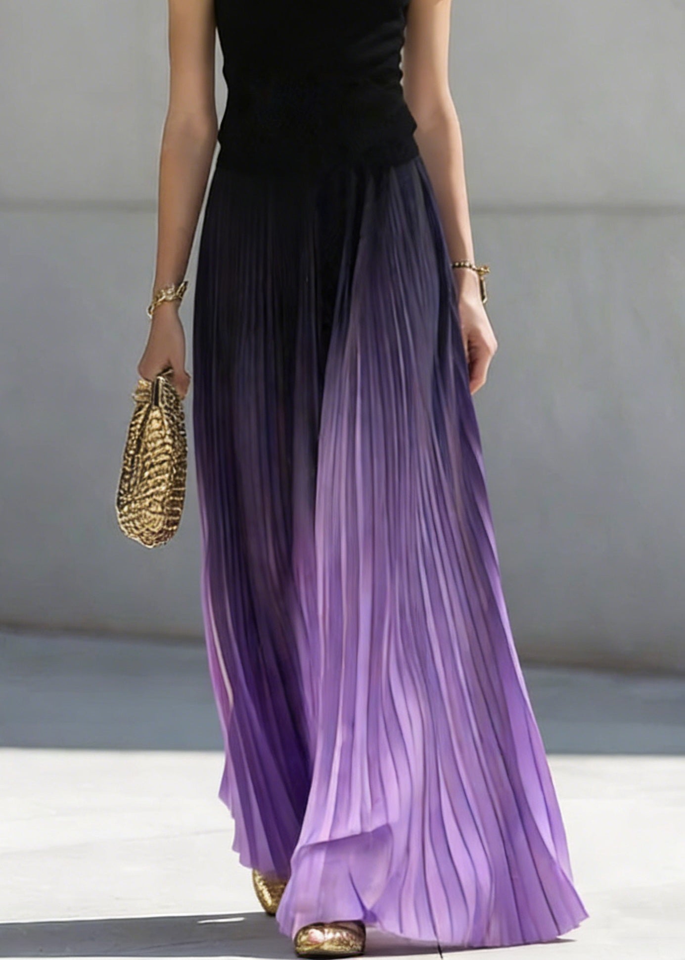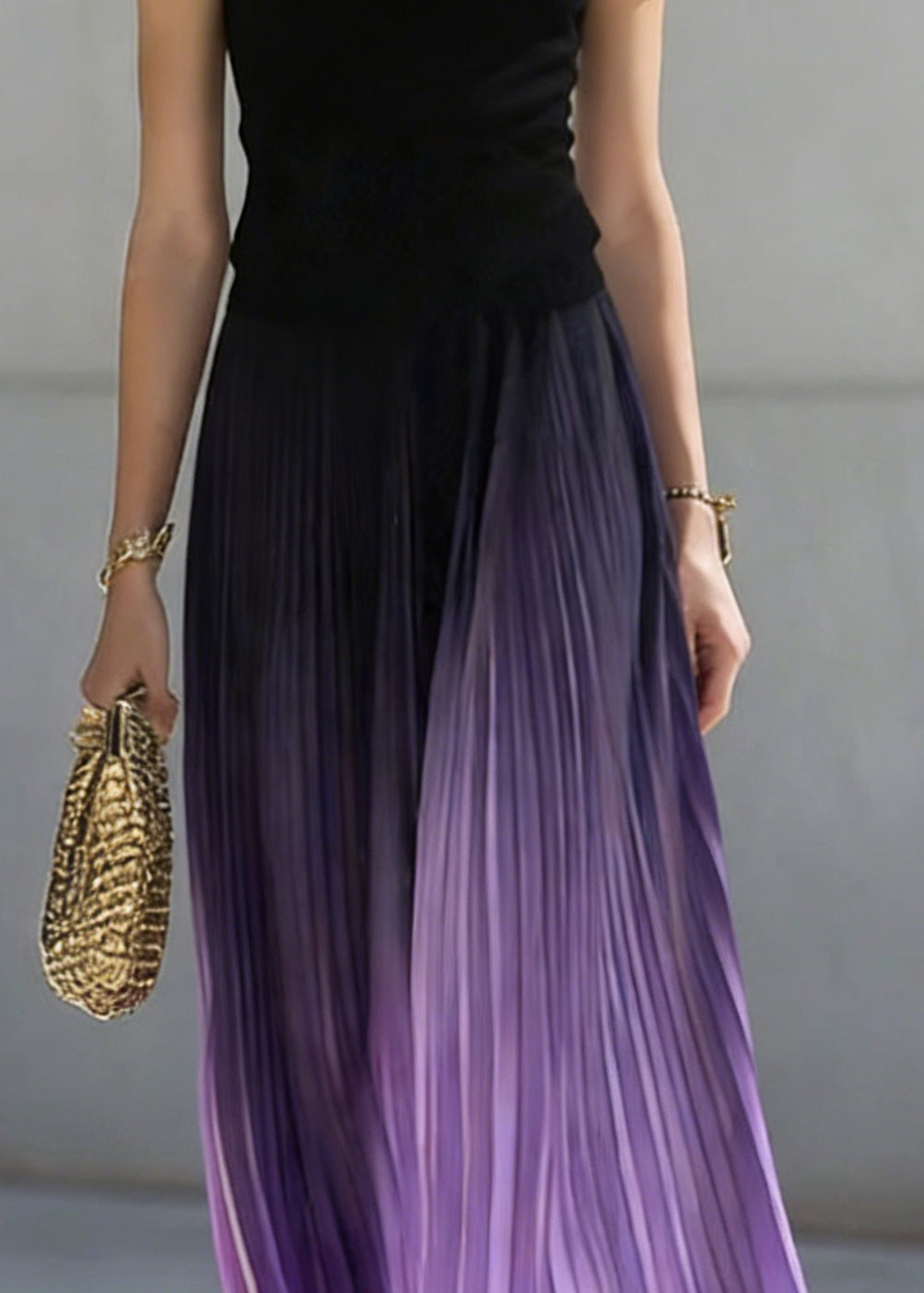 Loose Purple Wrinkled Elastic Waist Tulle Skirt Summer