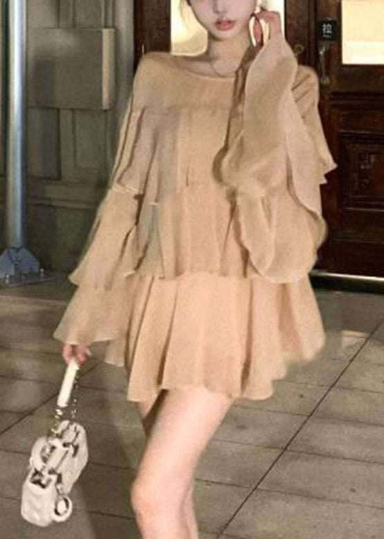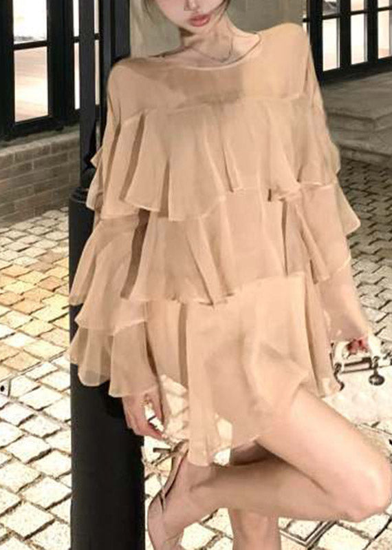Stylish Champagne Patchwork wrinkled Chiffon Skirt Spring