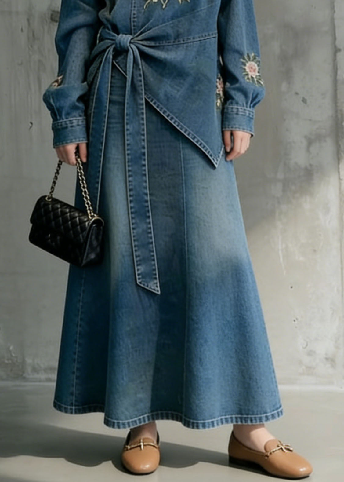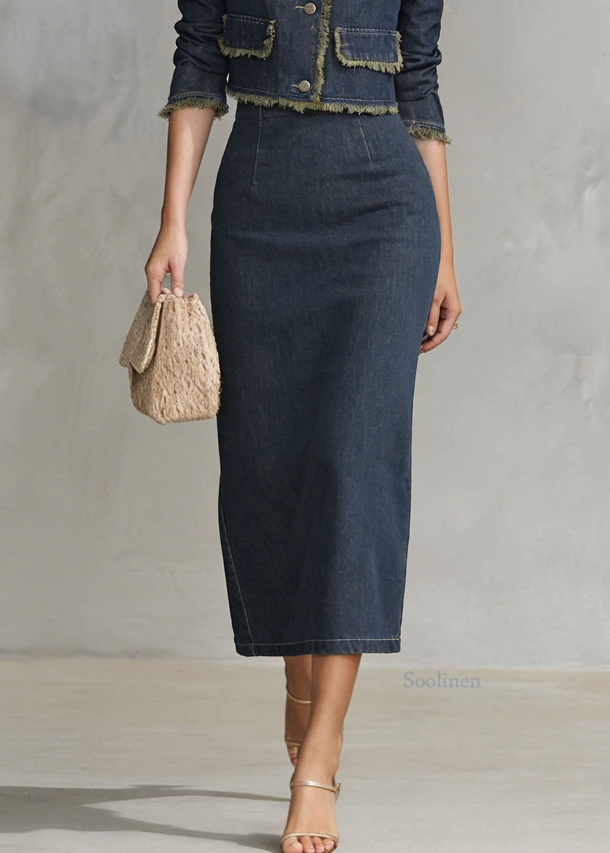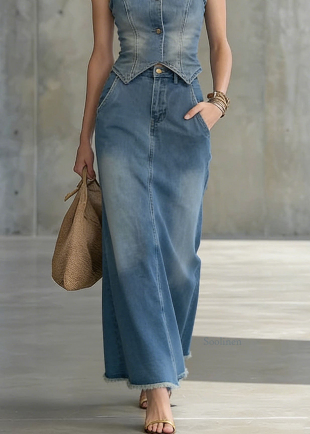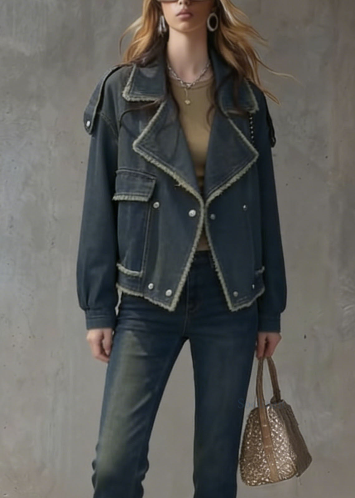 Stylish Navy V Neck Drawstring Denim Top Summer