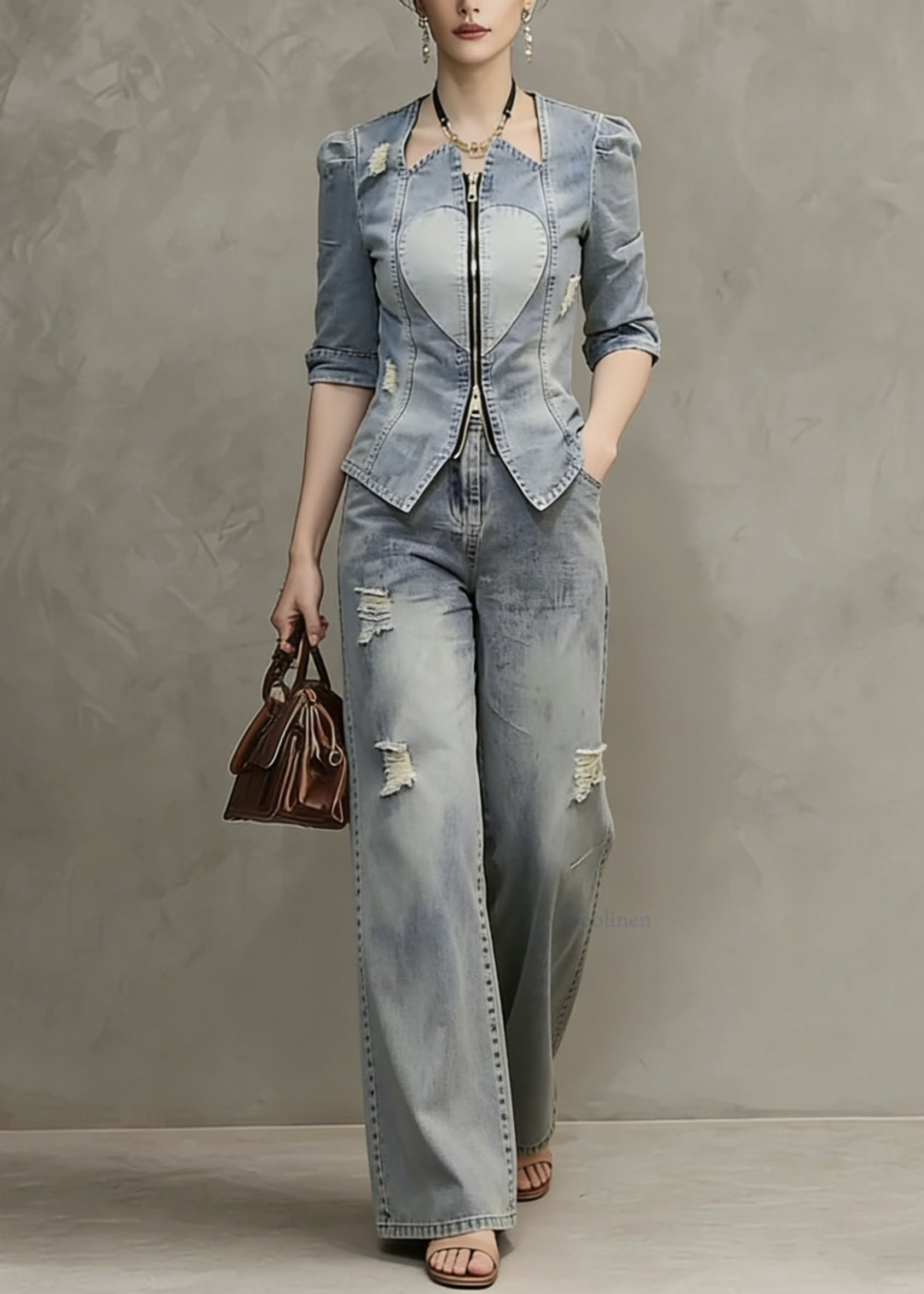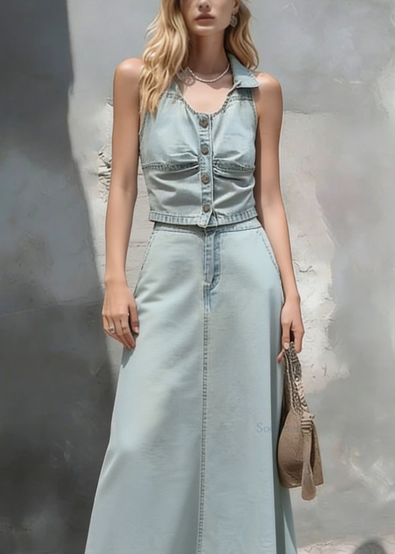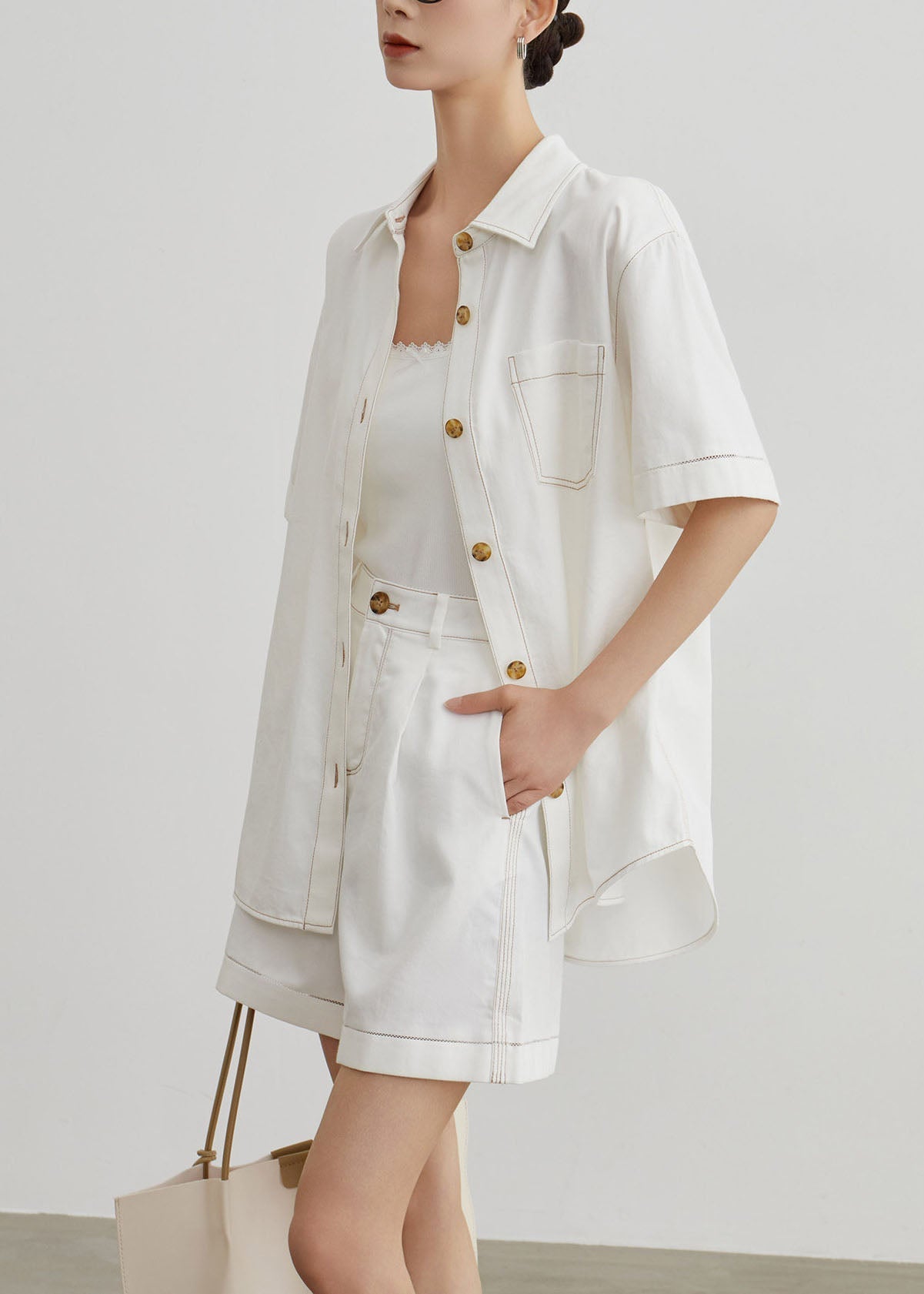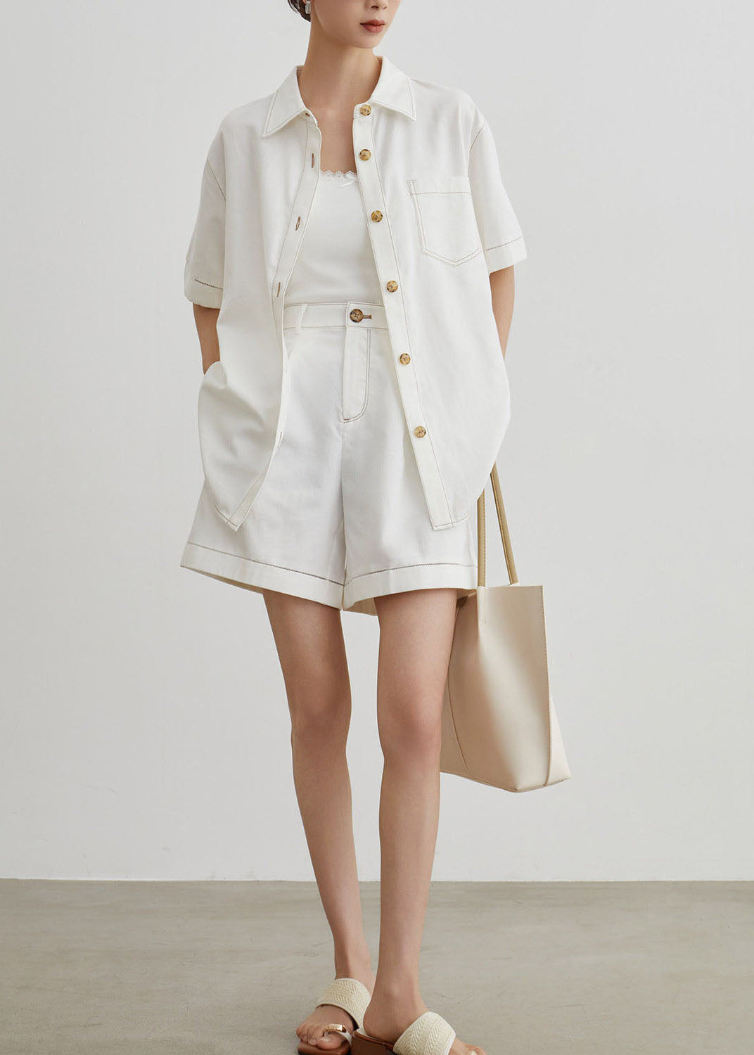 Modern White Peter Pan Collar Denim Two Pieces Set Summer