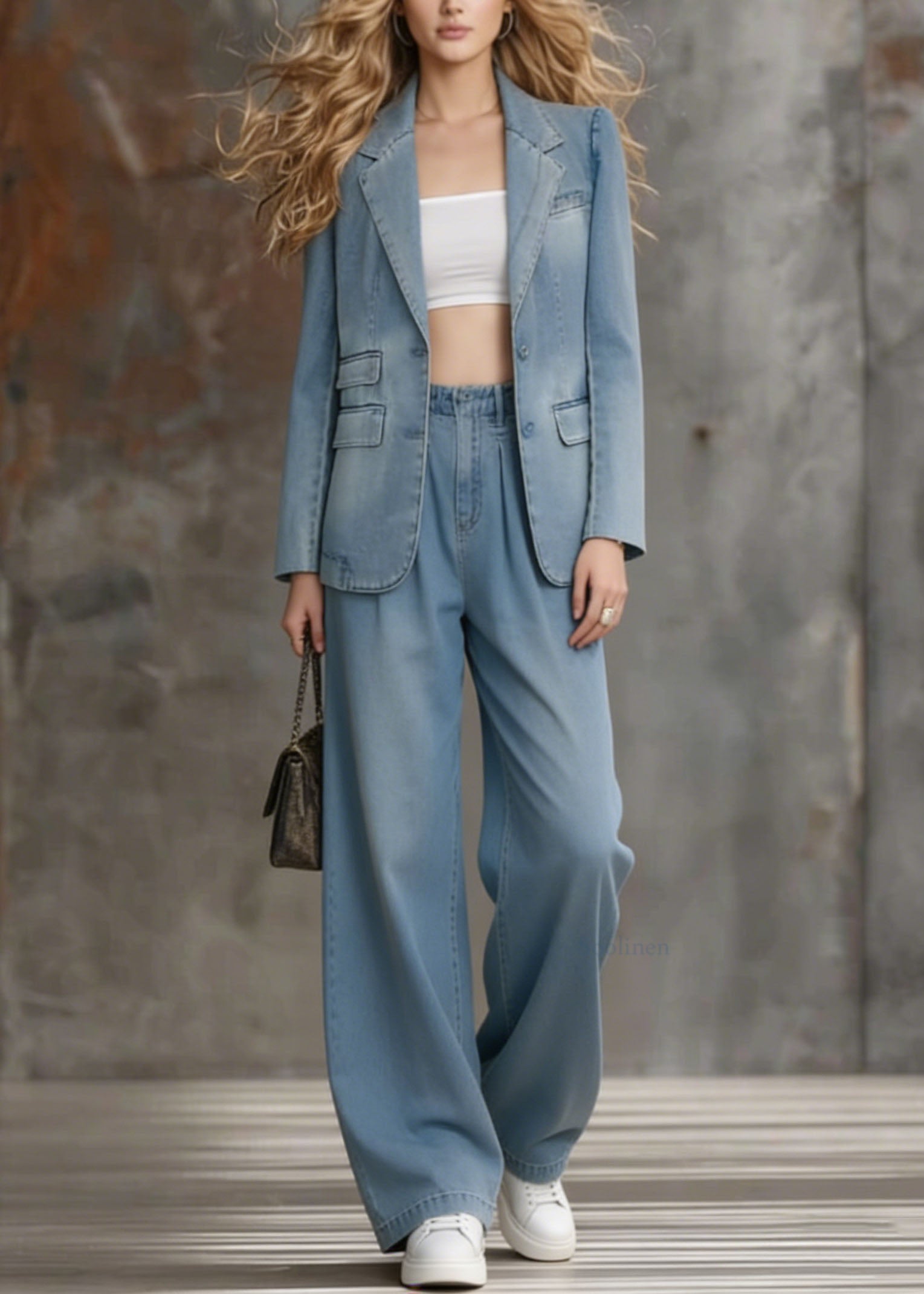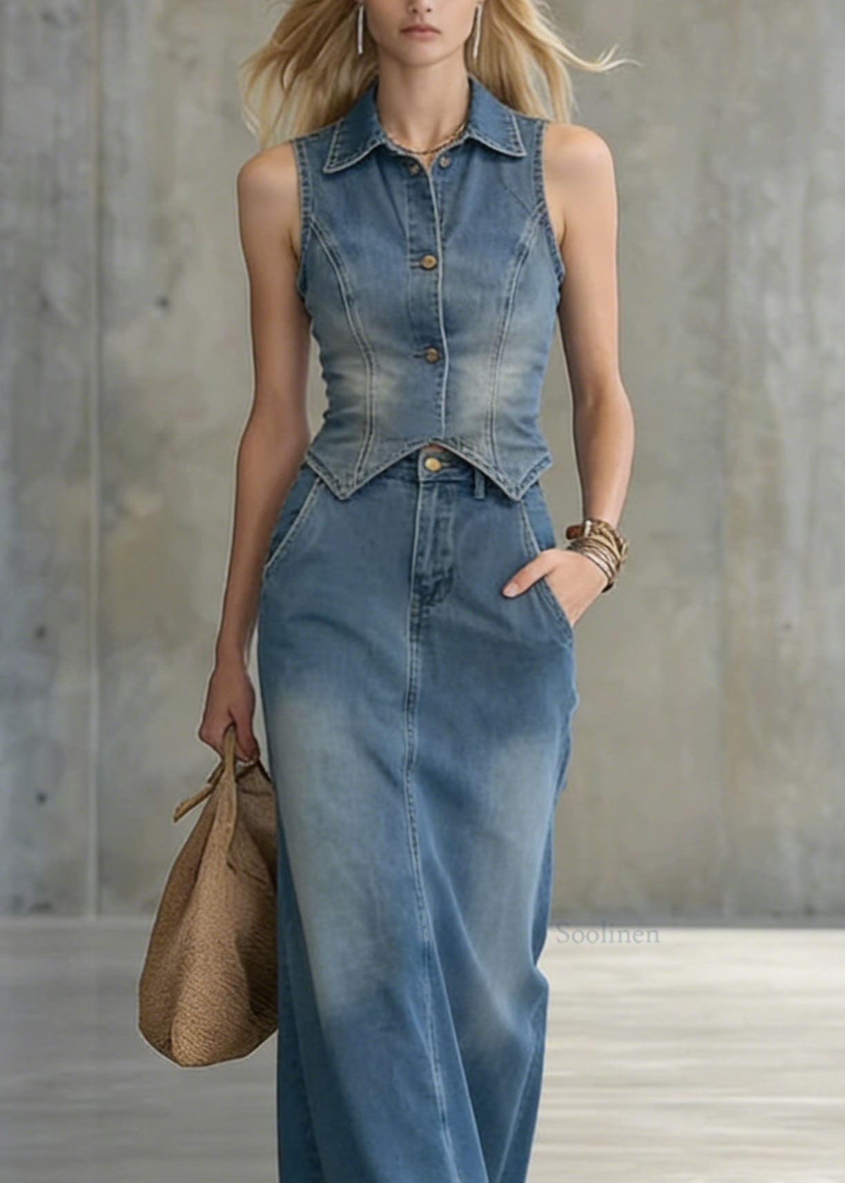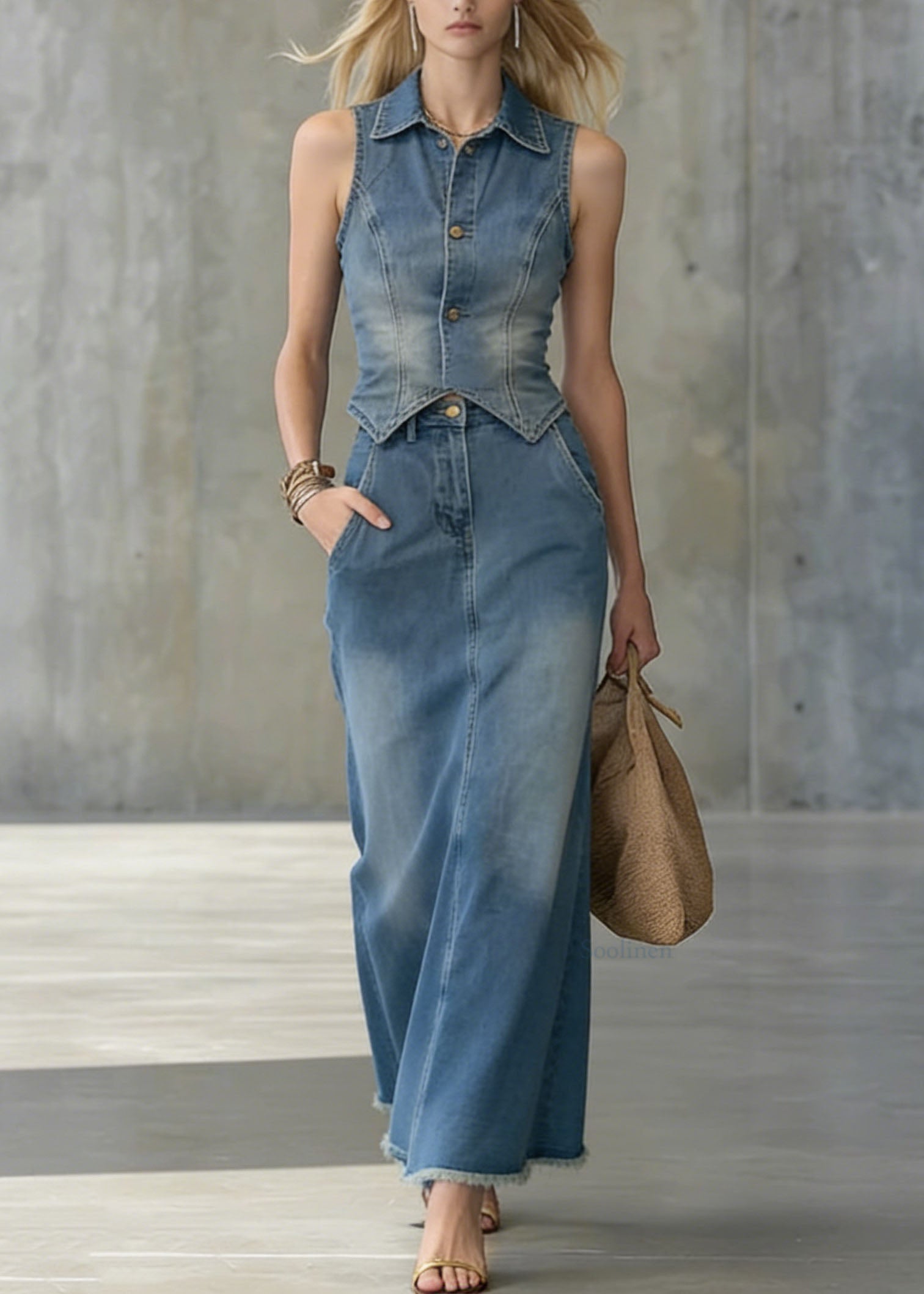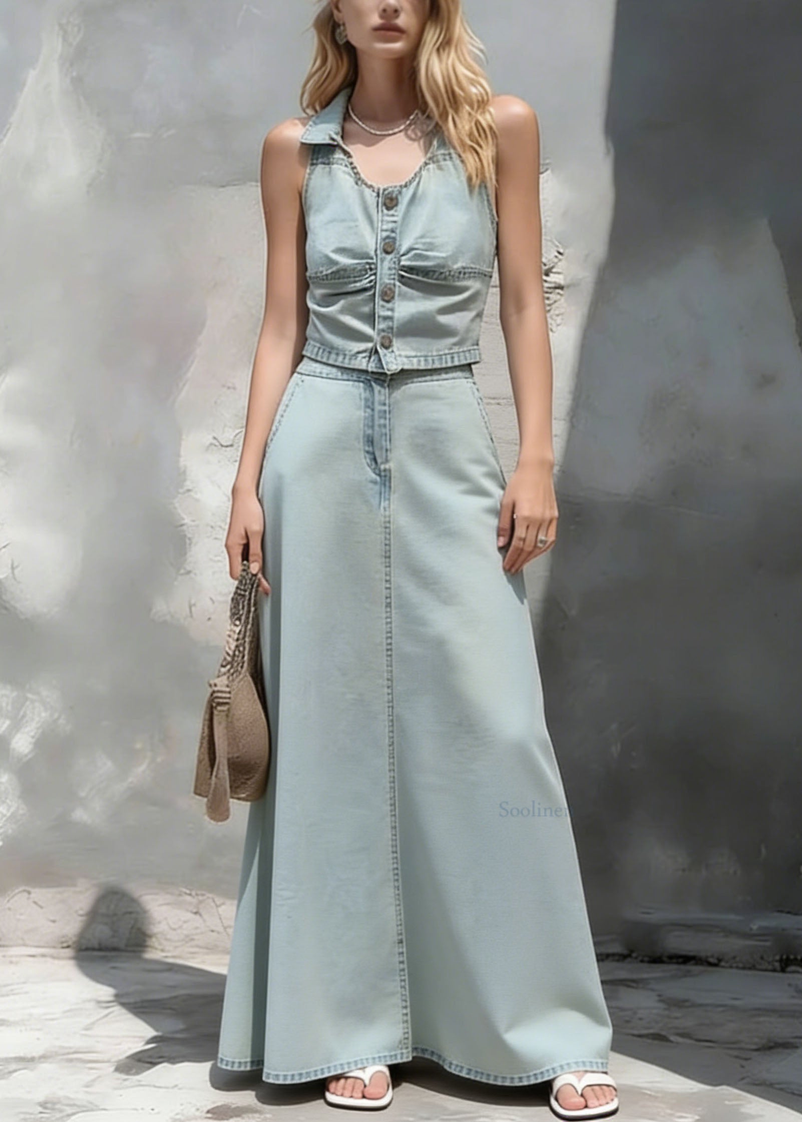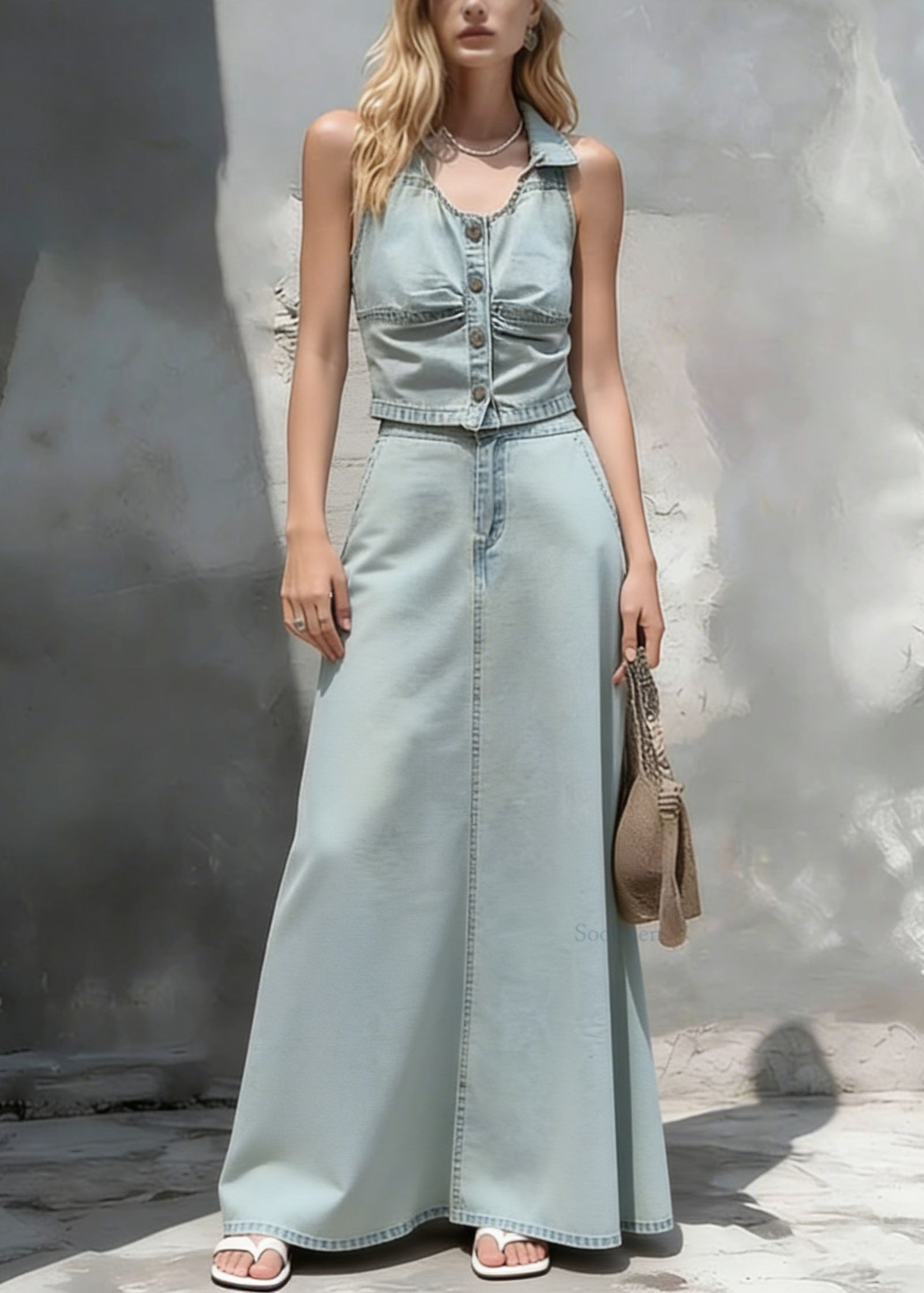 Modern White Peter Pan Collar Denim Two Pieces Set Summer