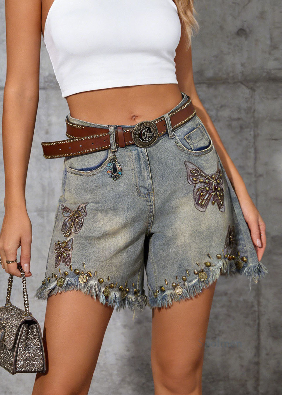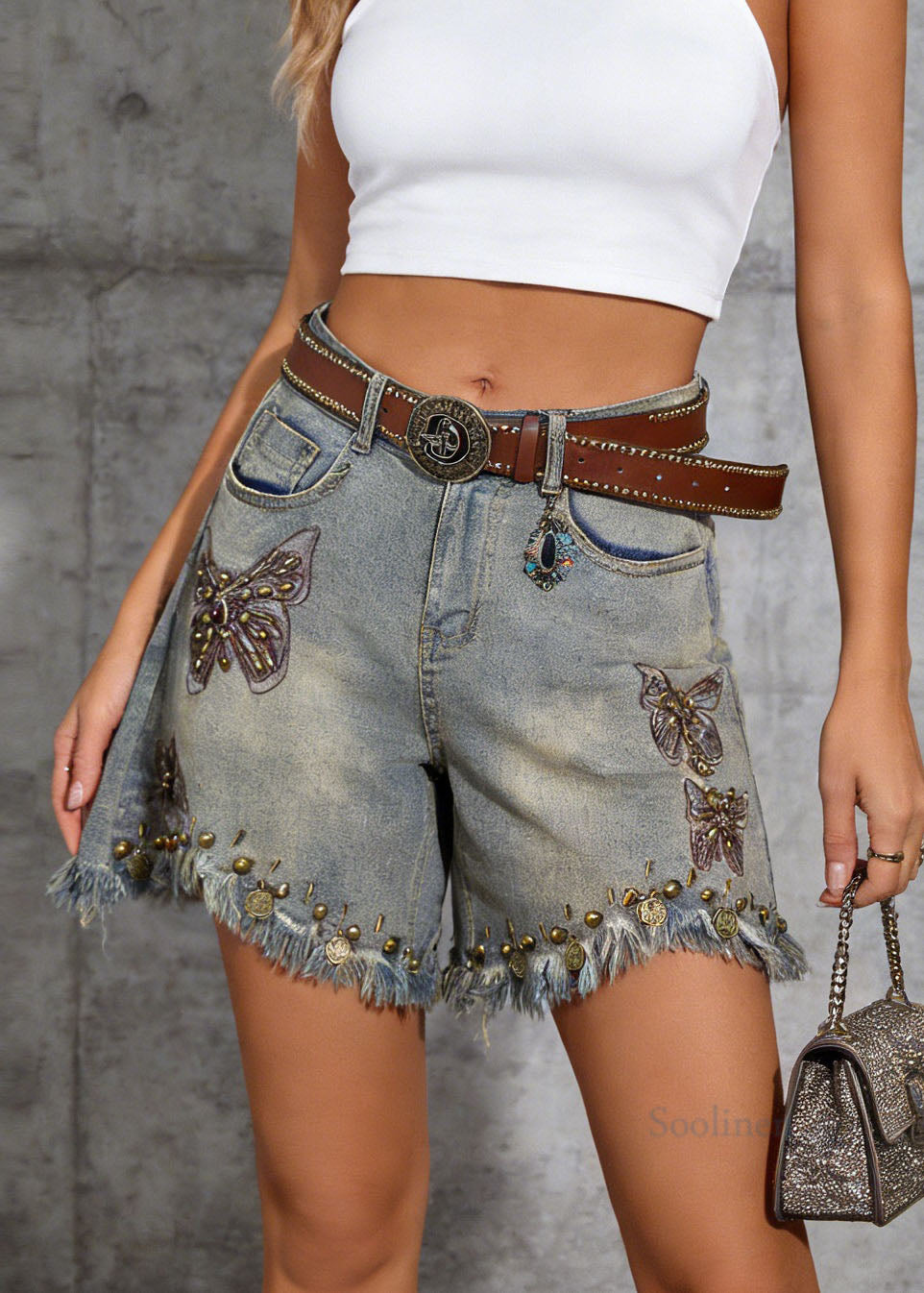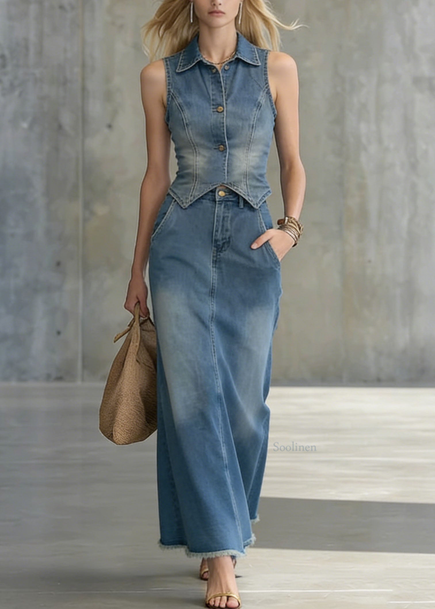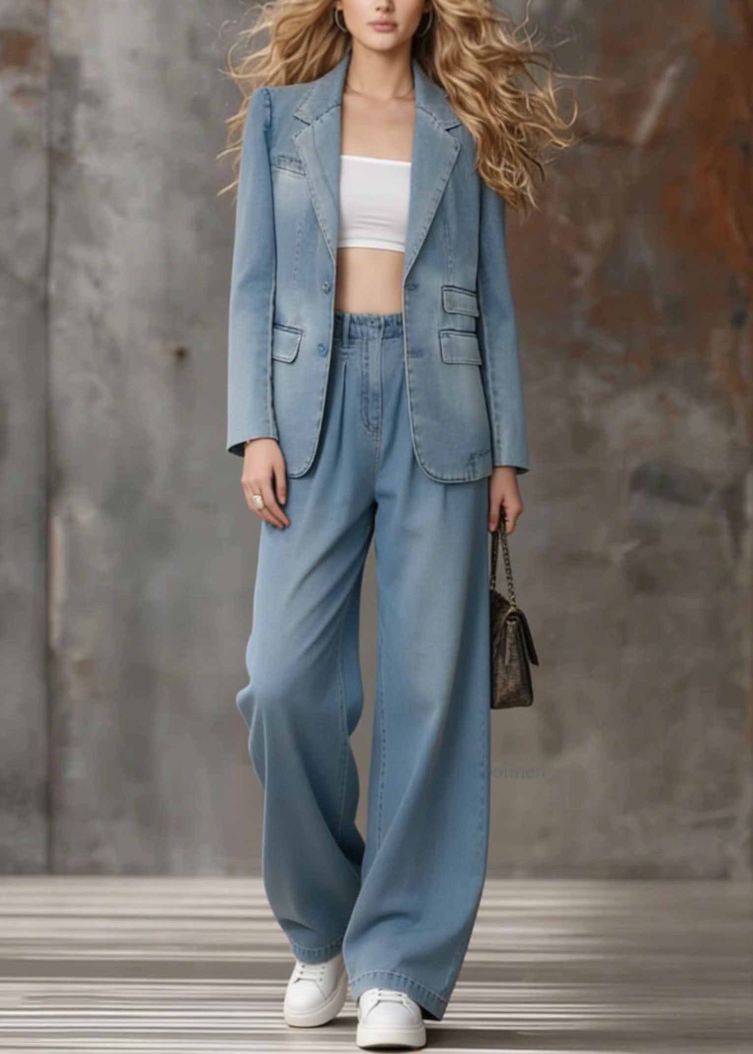 Modern White Peter Pan Collar Denim Two Pieces Set Summer
