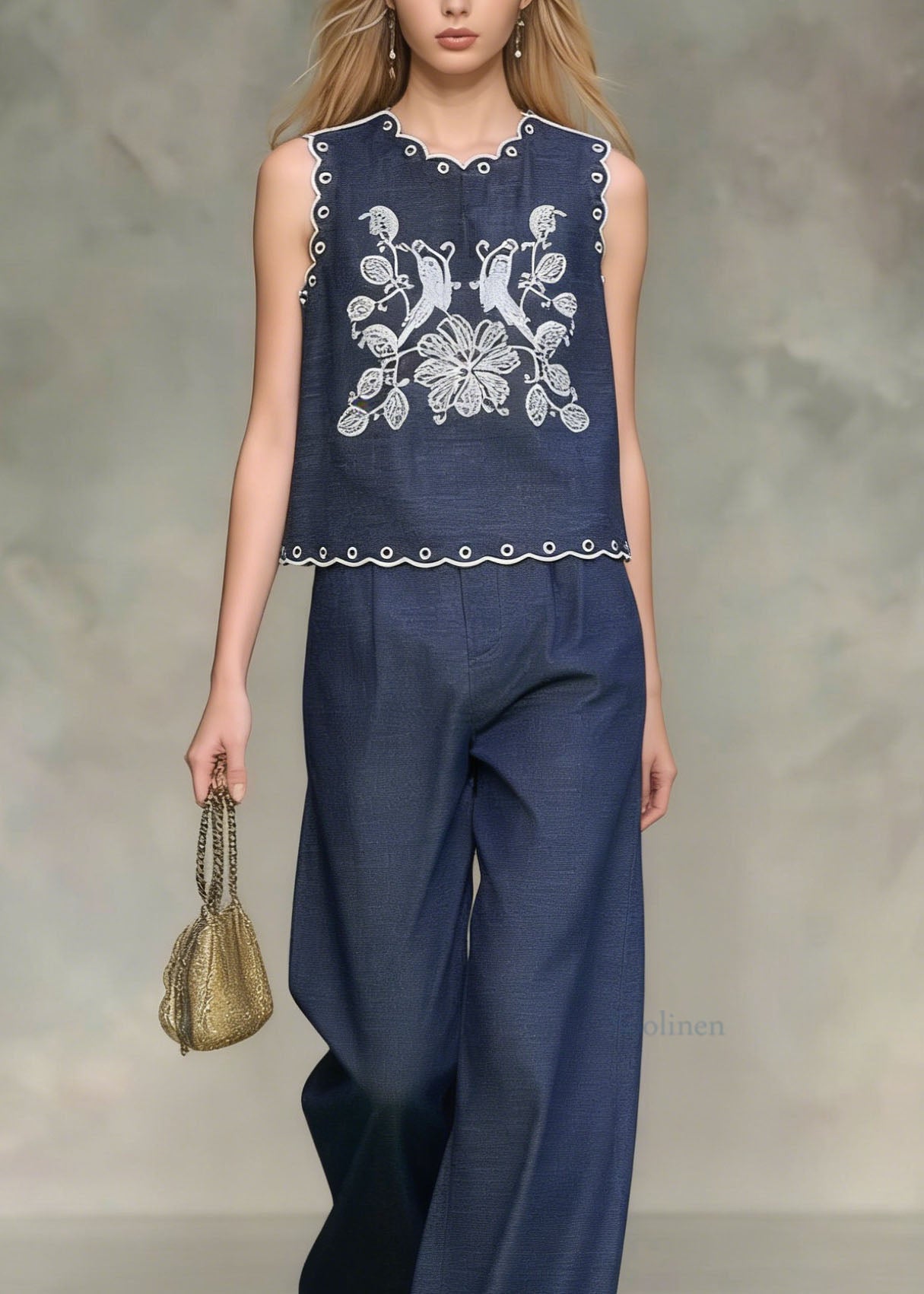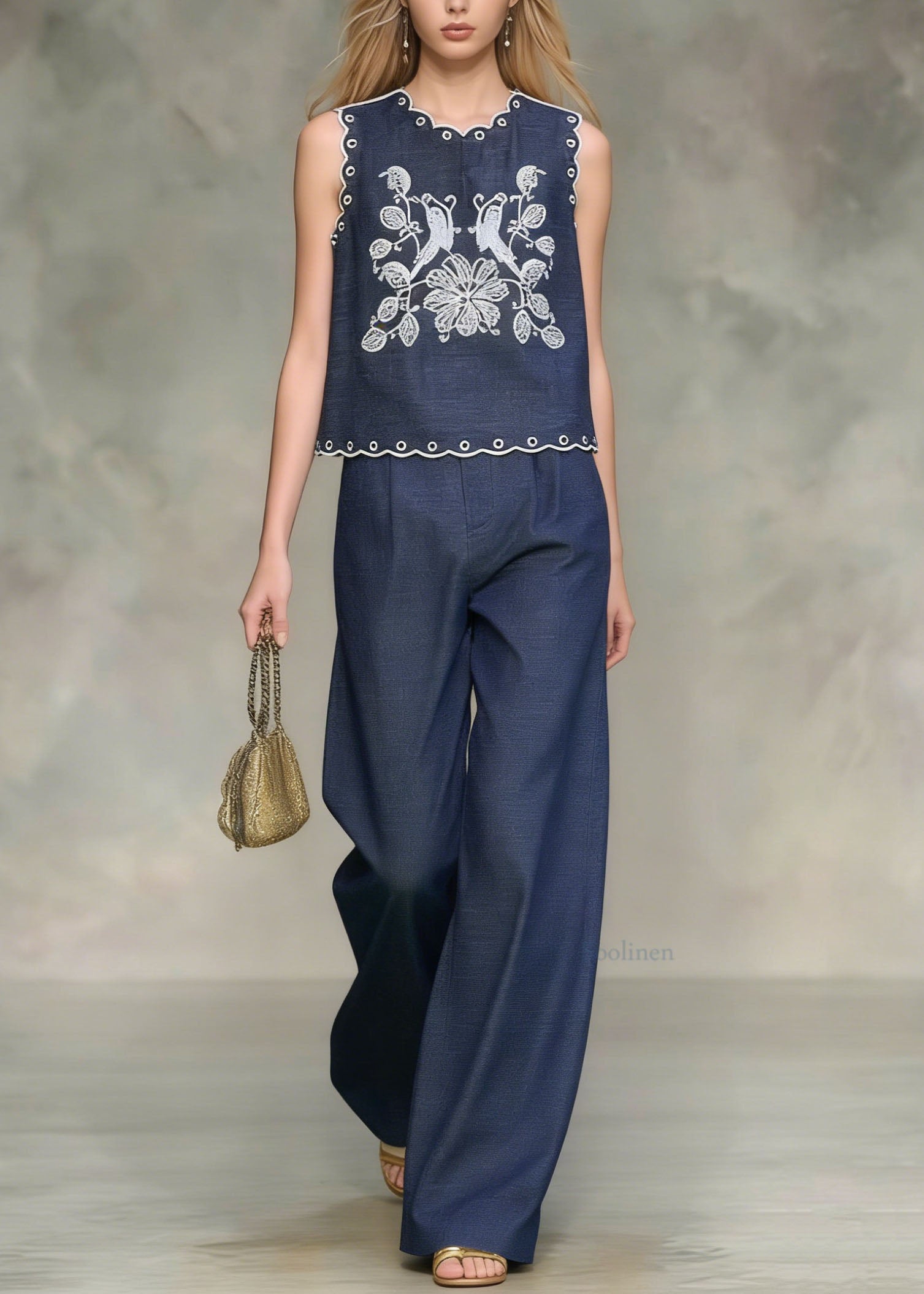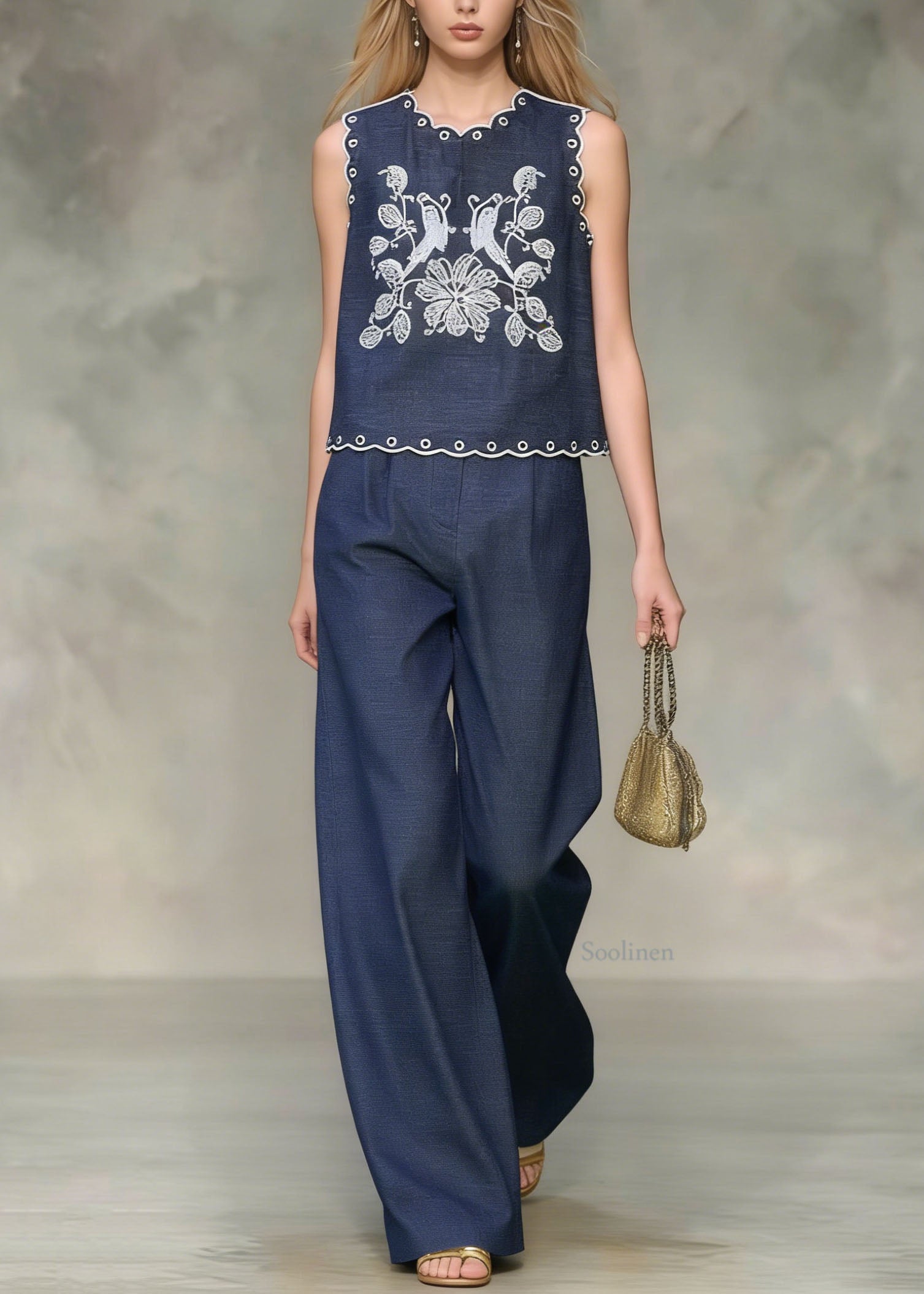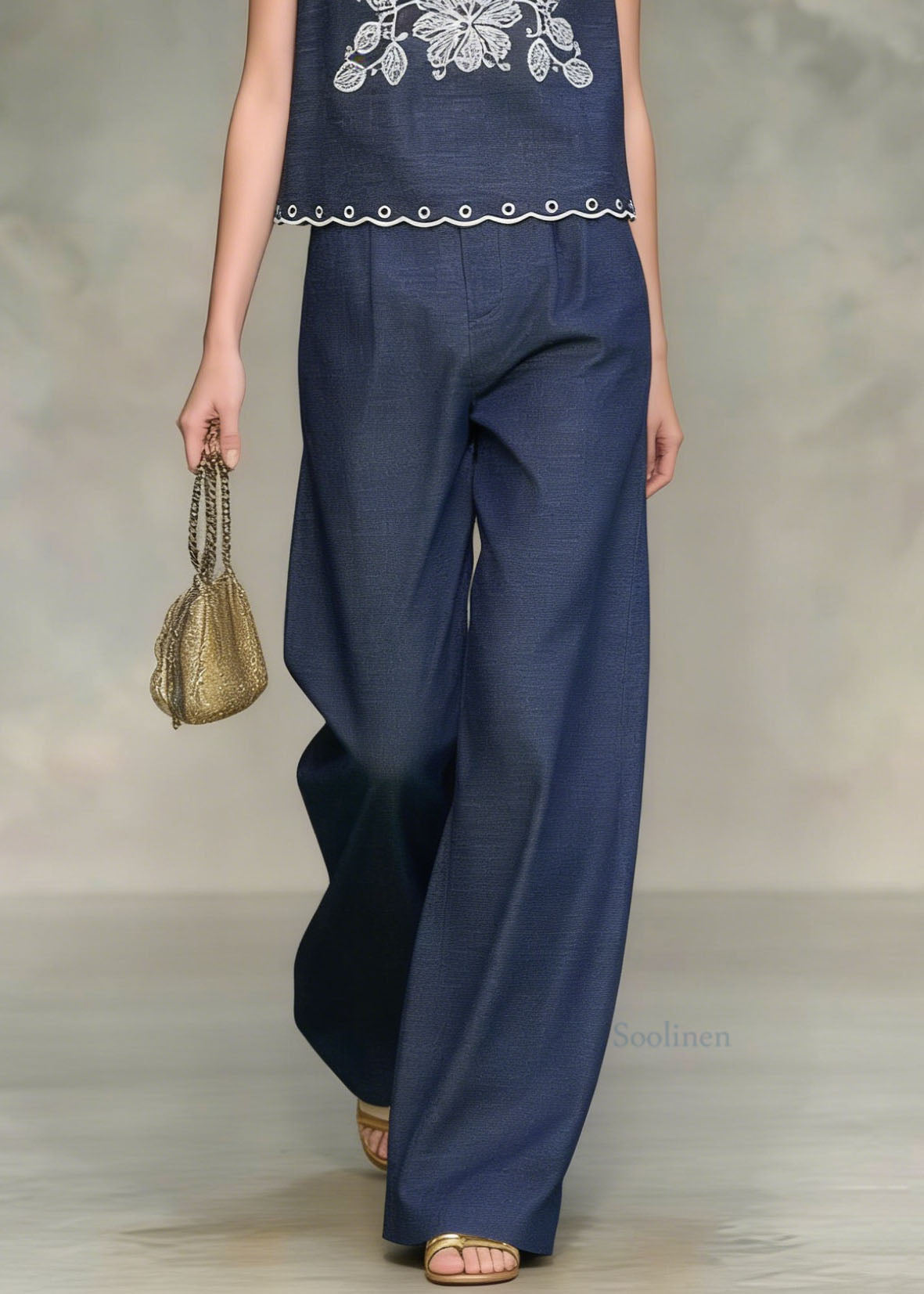Blue Prints Vintage Chiffon Low High T Shirt And Wide Leg Pants Two Pieces