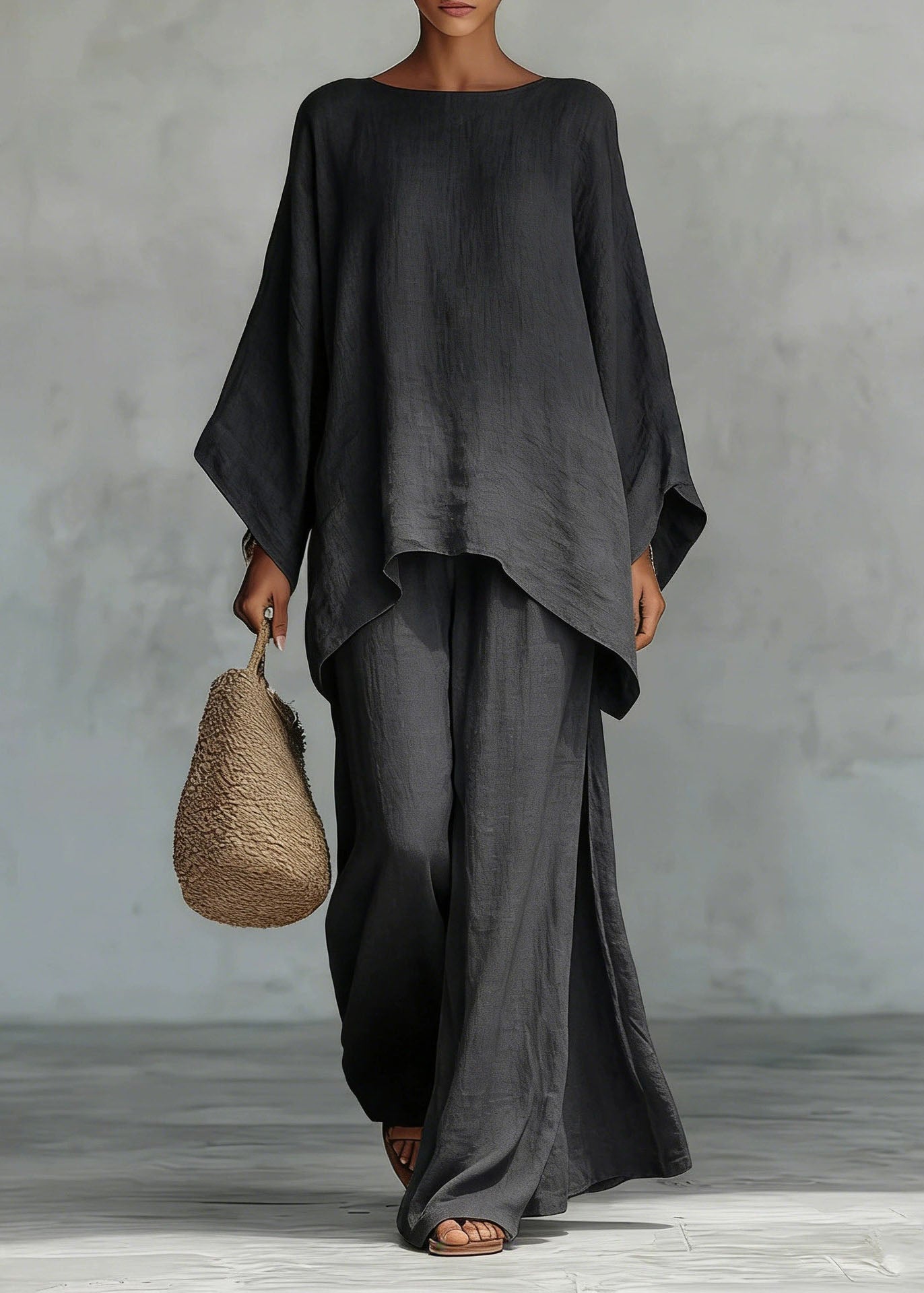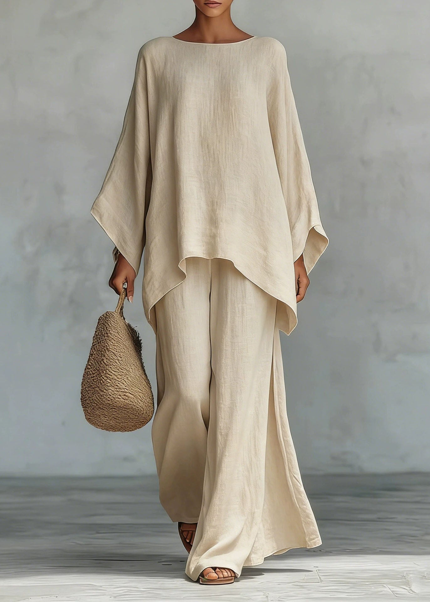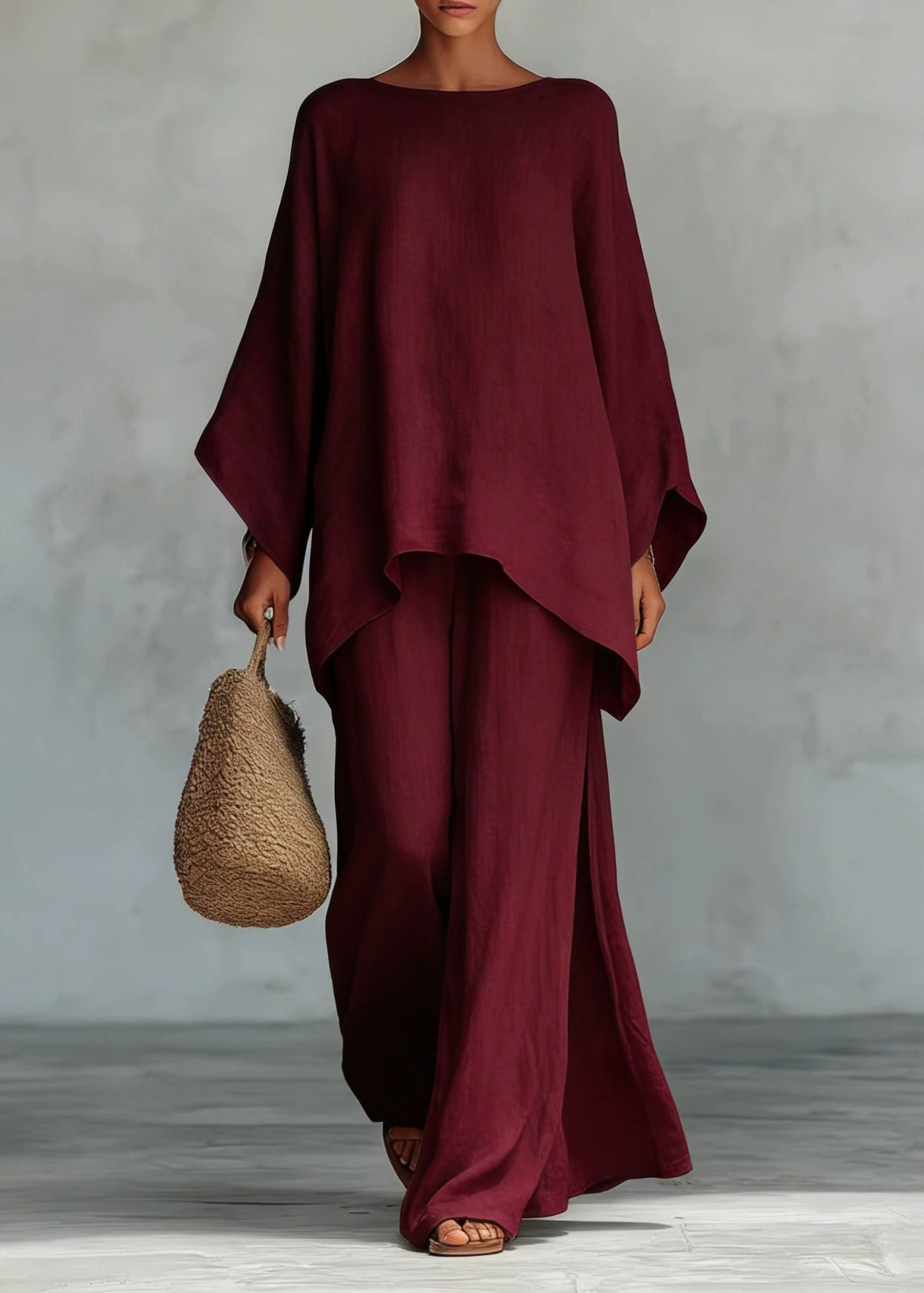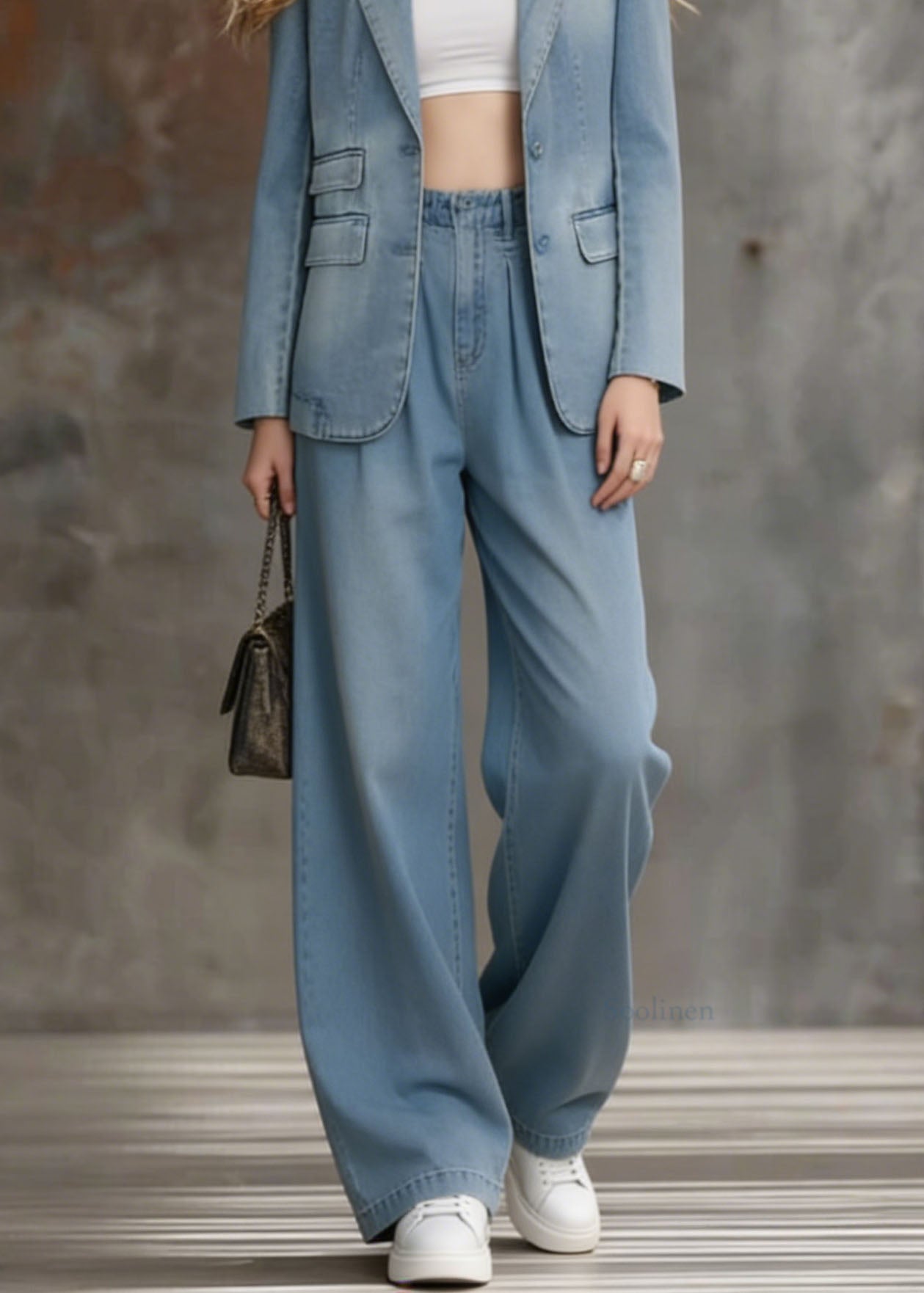 Blue Prints Vintage Chiffon Low High T Shirt And Wide Leg Pants Two Pieces
