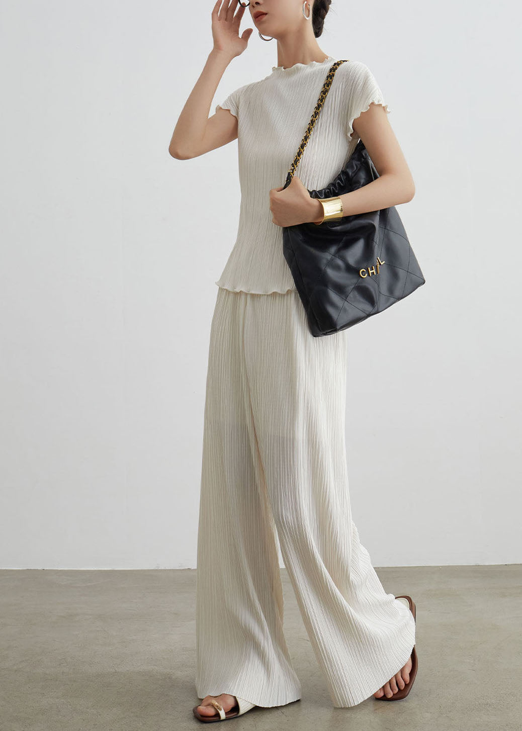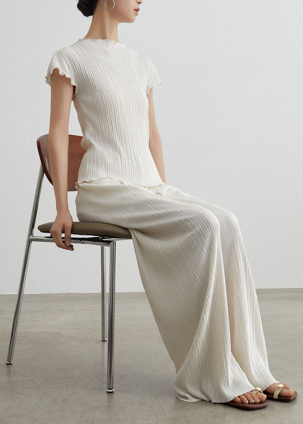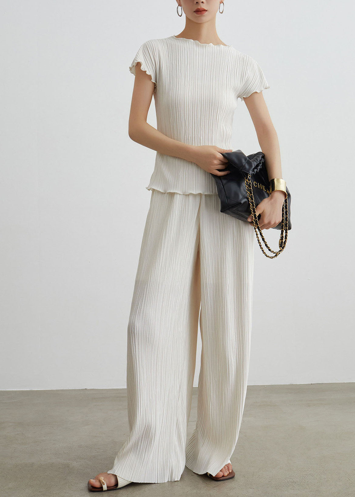 Boutique White Wrinkled T Shirt Pants Cotton Two Pieces Set Summer