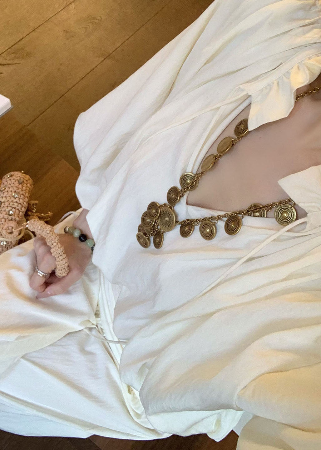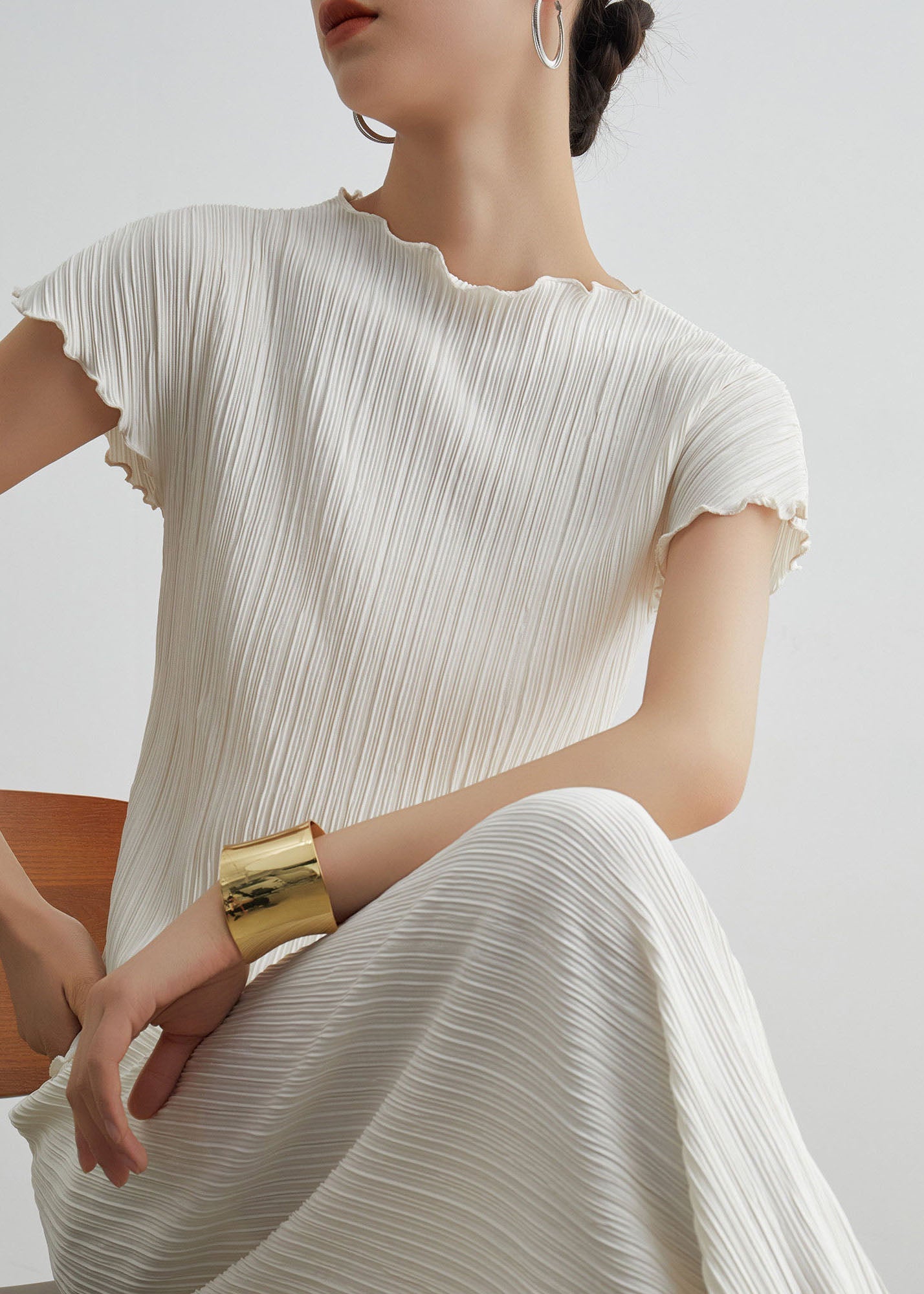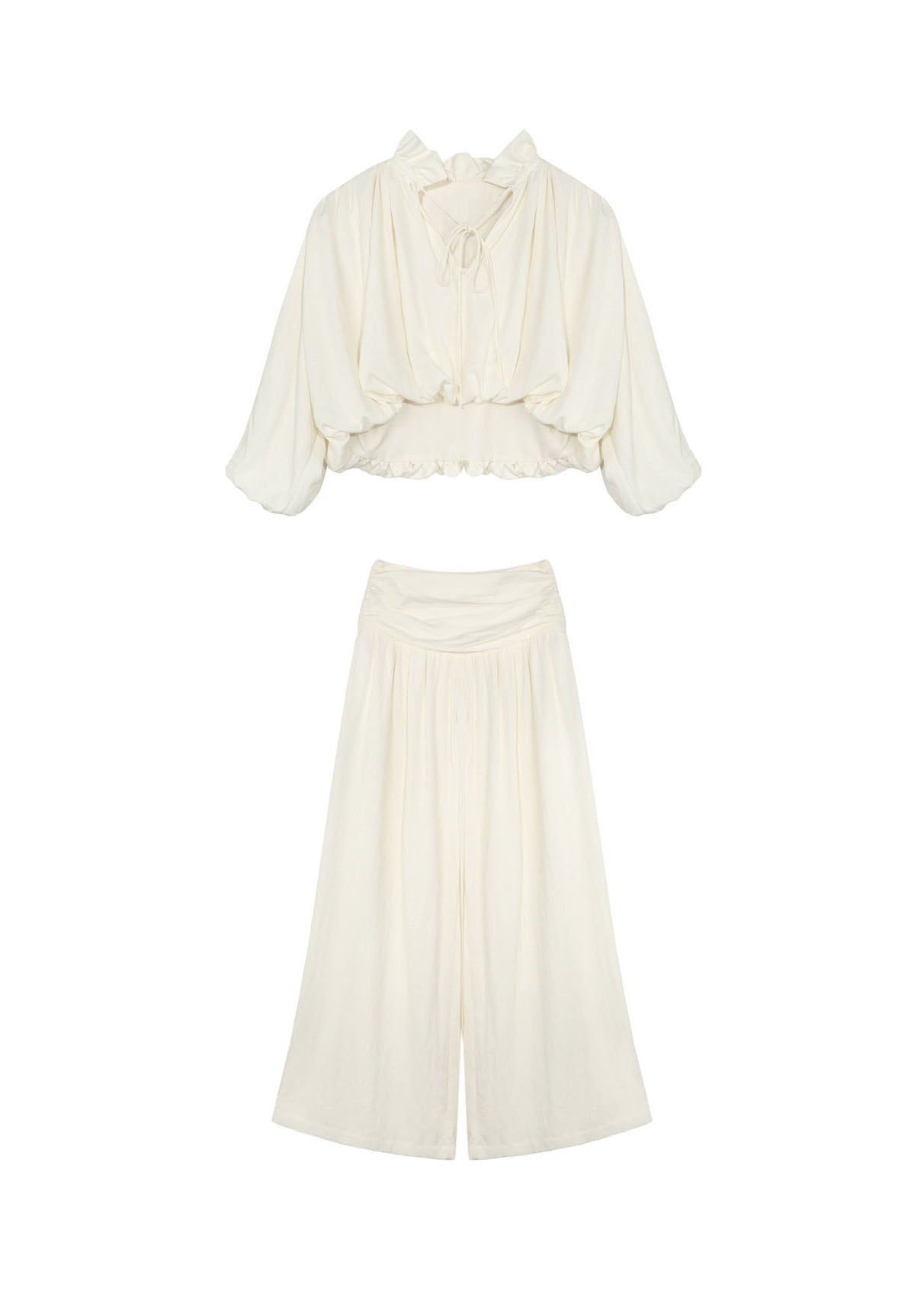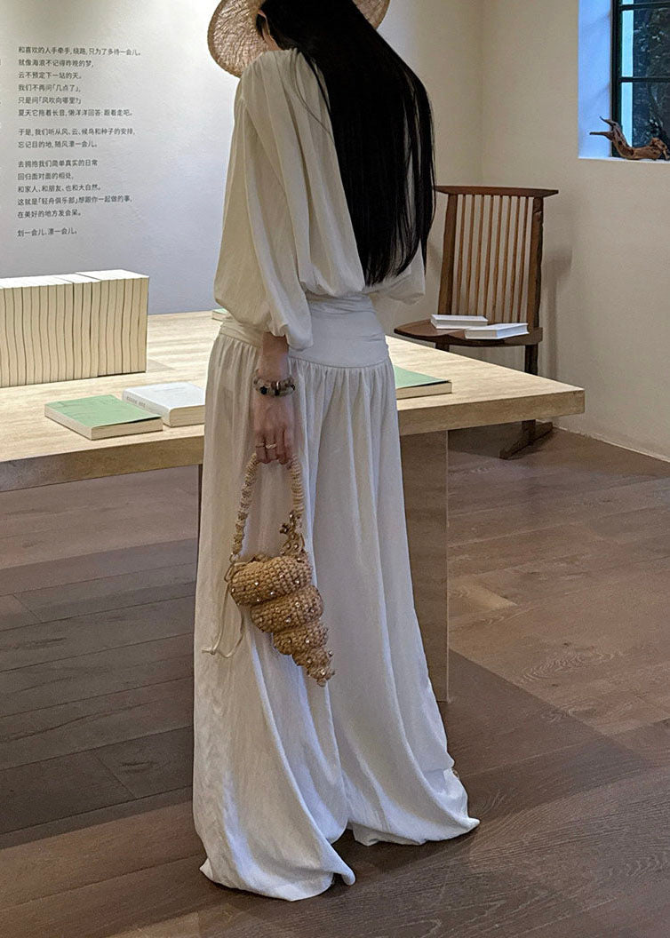 Boutique White Wrinkled T Shirt Pants Cotton Two Pieces Set Summer