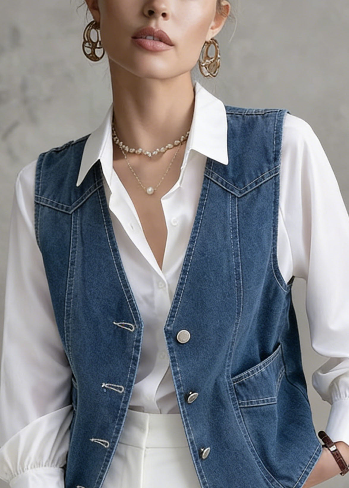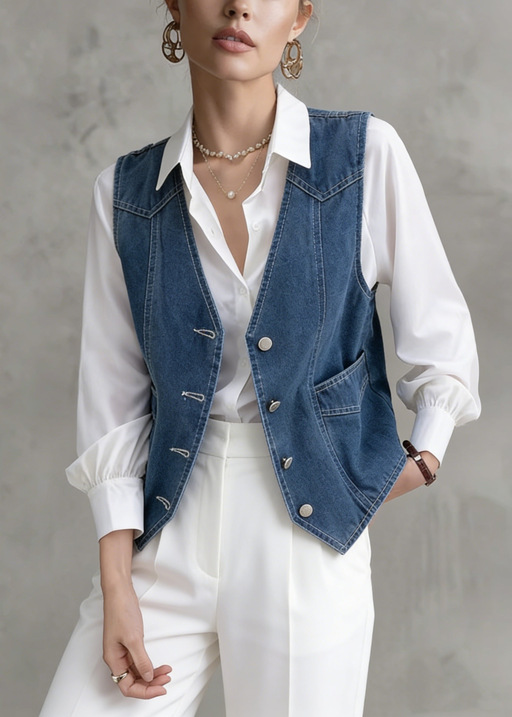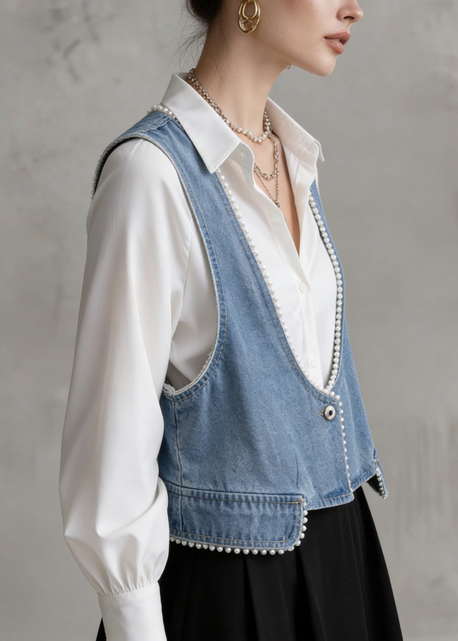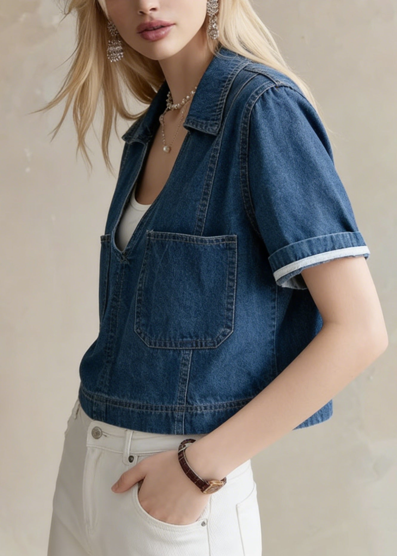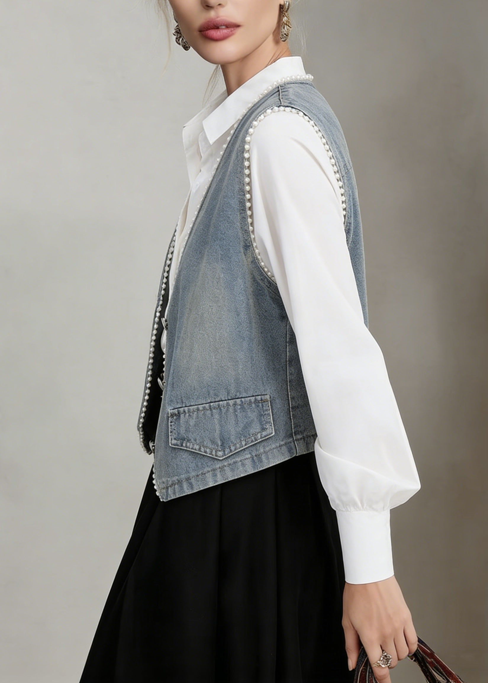 Beautiful Blue Peter Pan Collar Denim Two Piece Suit Set Spring