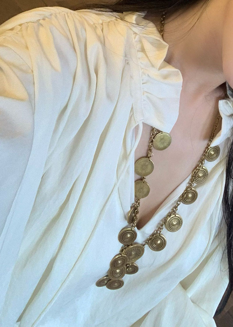 New Apricot Embroidered Button Cotton Shirts Bracelet Sleeve