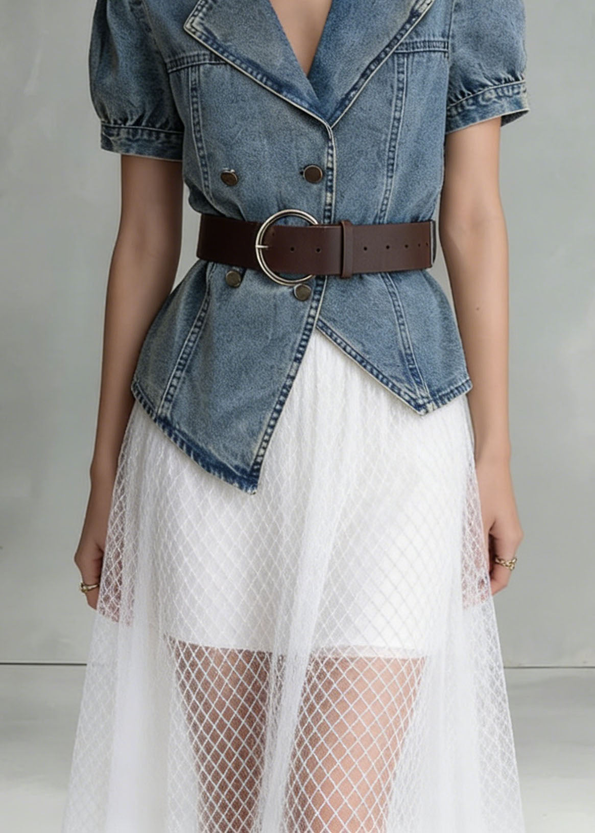 Unique White Tulle Patchwork Denim Strap Dress Summer