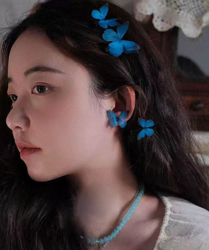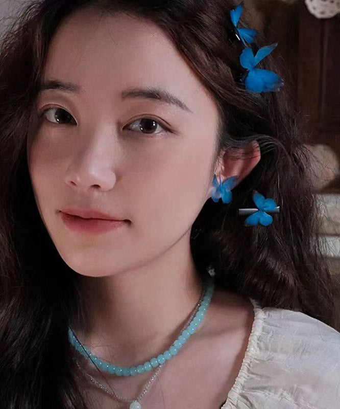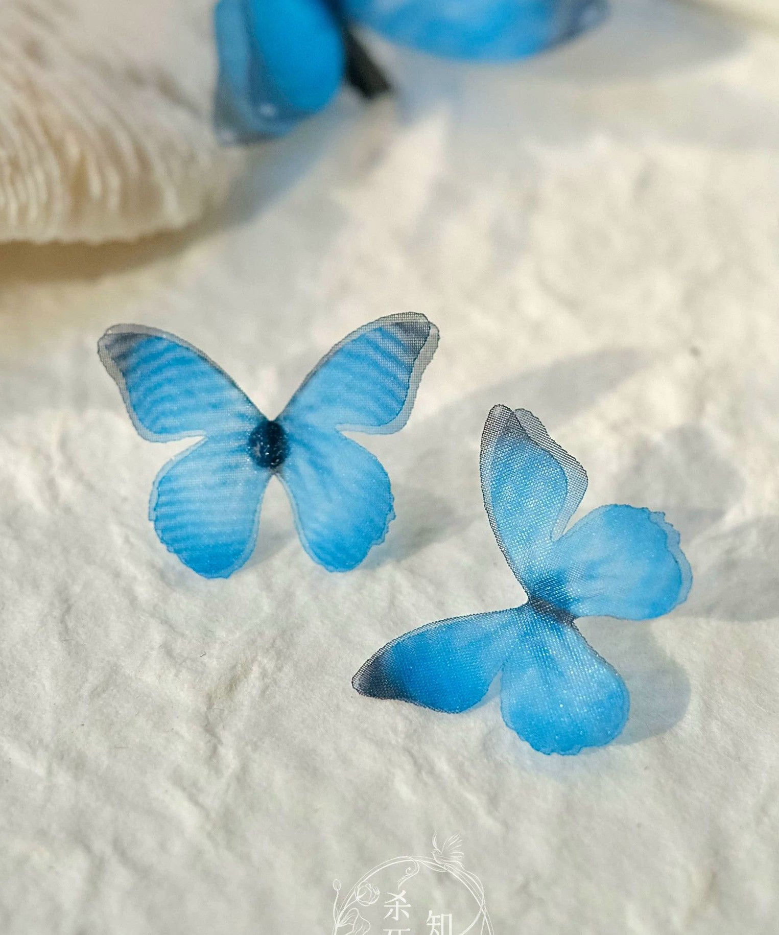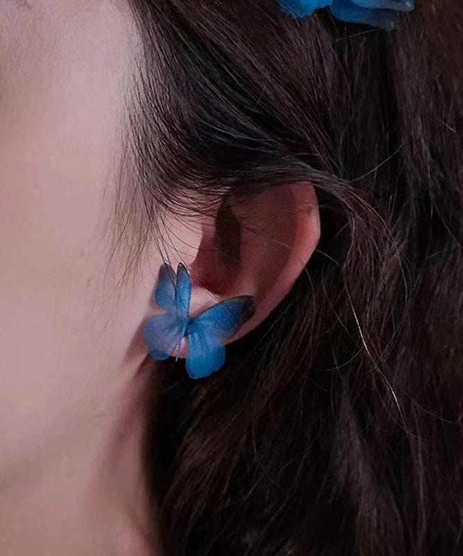Fine Blue Tulle Alloy Butterfly Stud Earrings