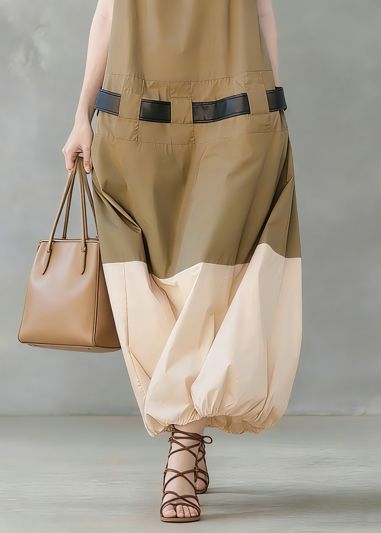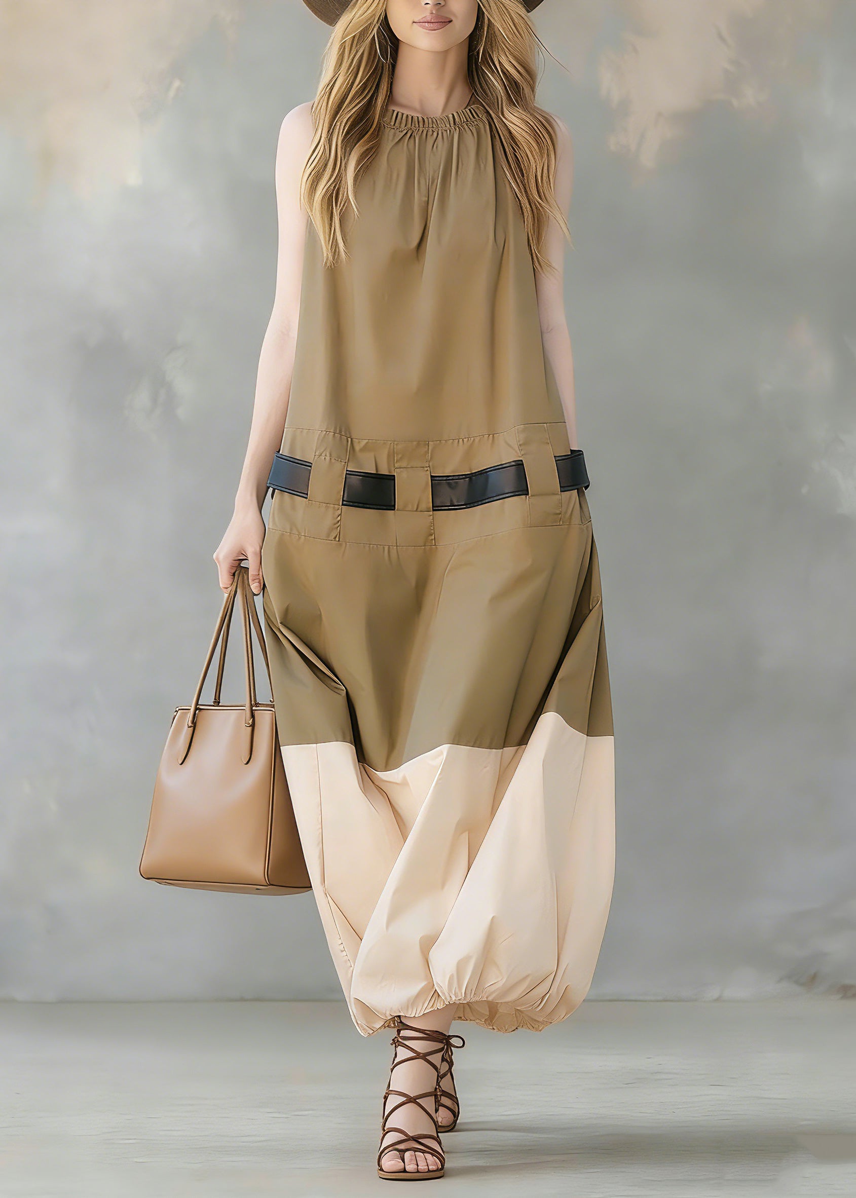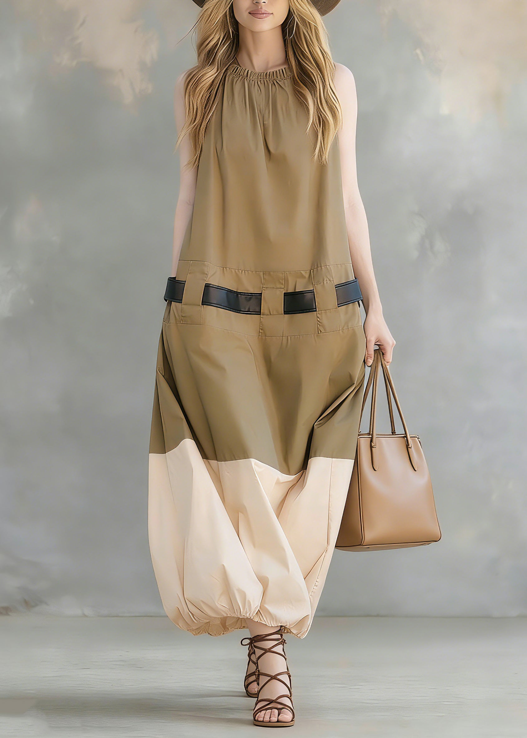 Modern Beige O-Neck Solid Maxi Dresses Spring