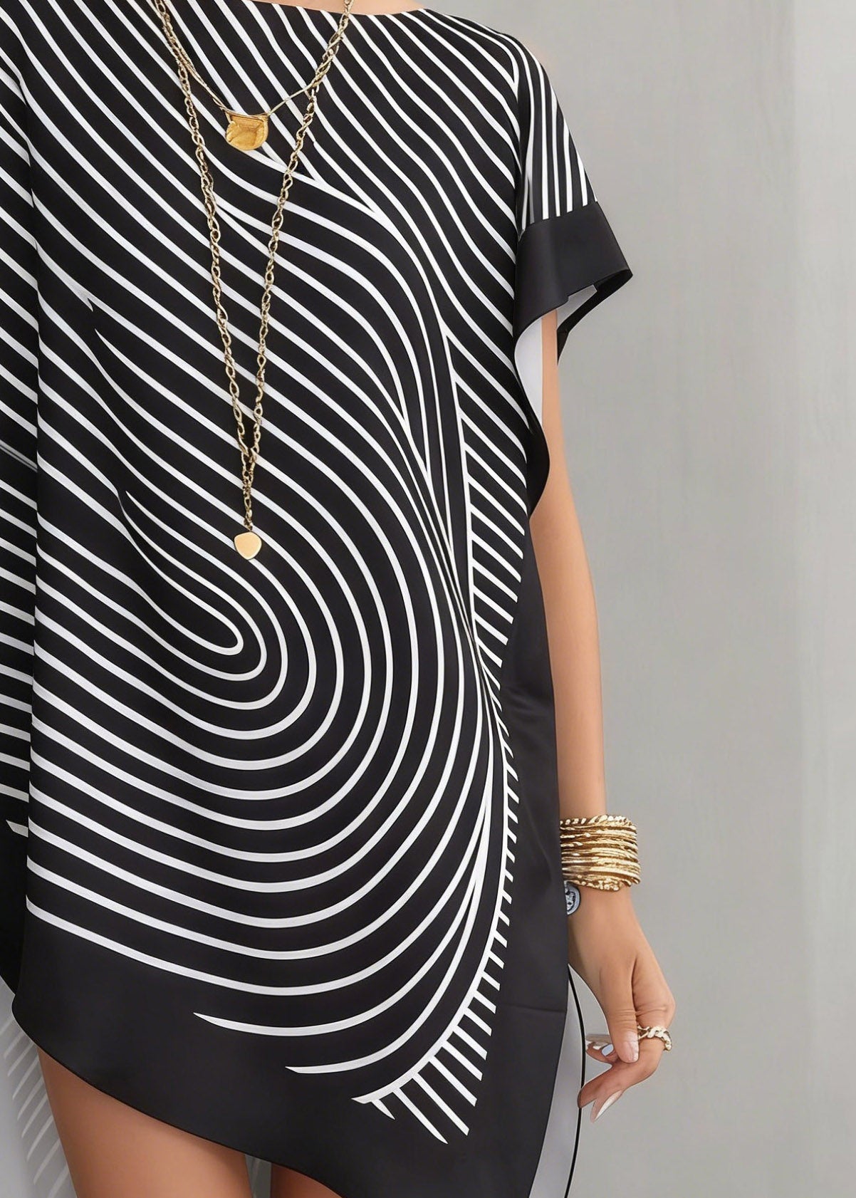 Organic Black Asymmetrical Striped Side Open Tops Summer