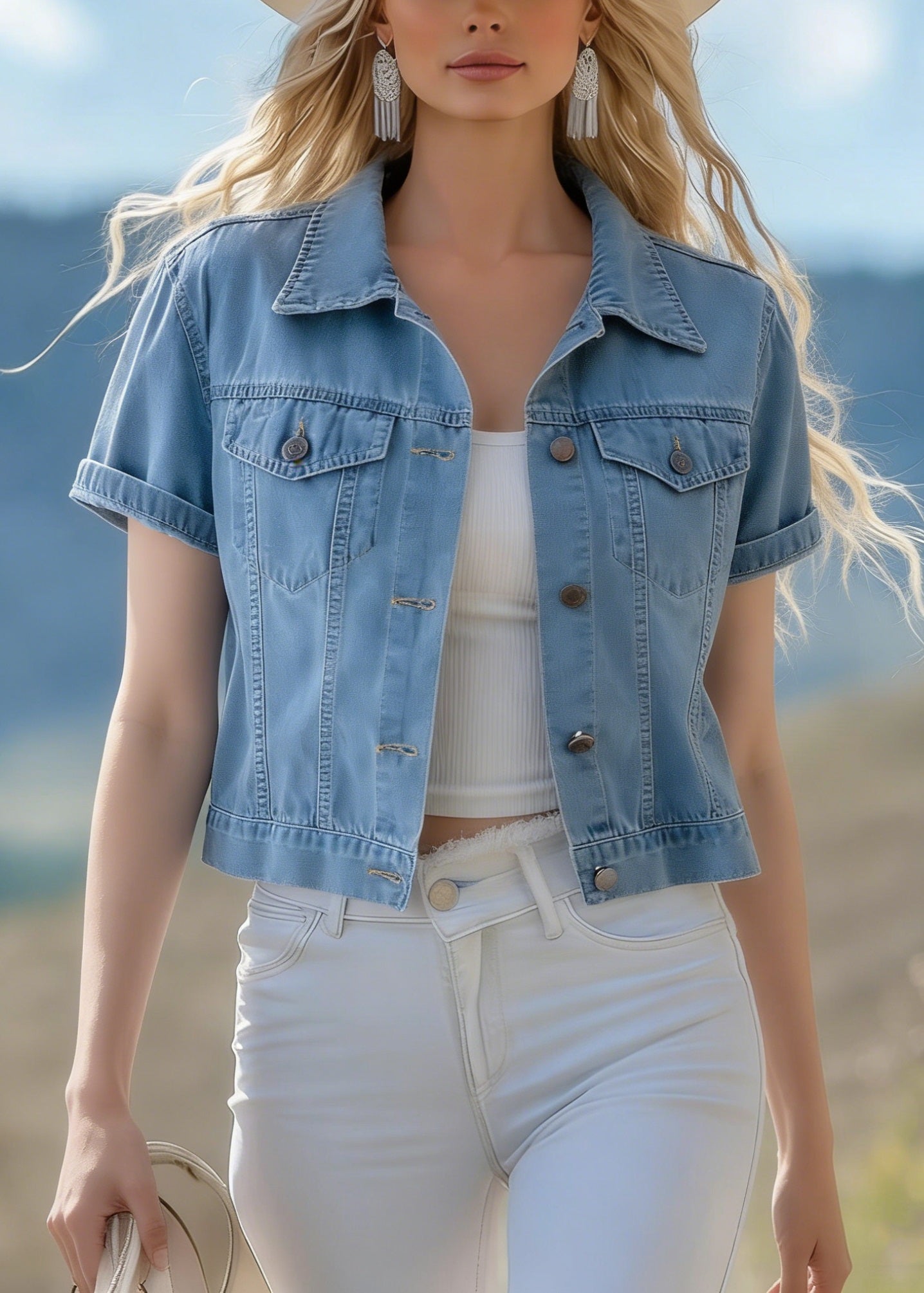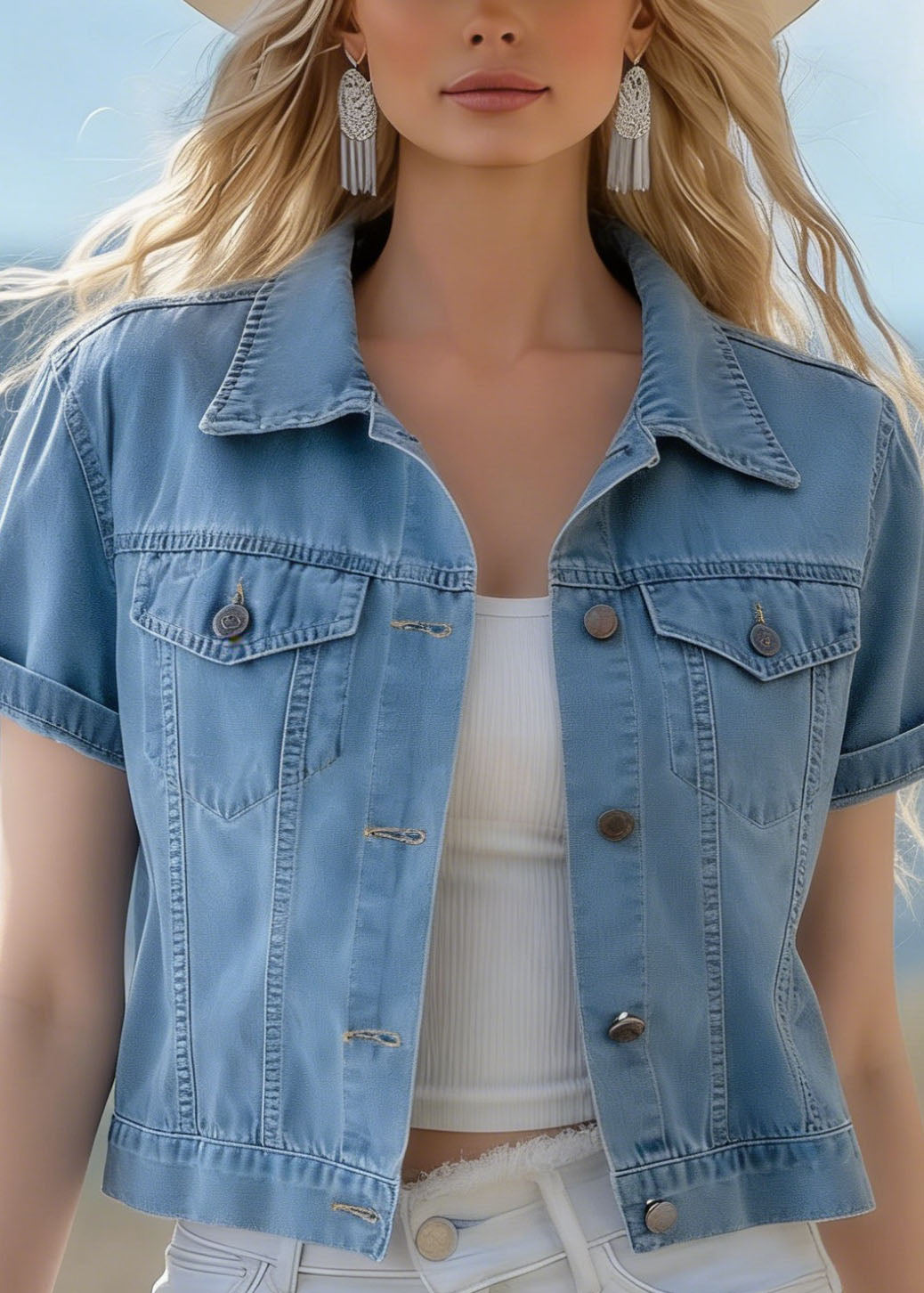 Stylish Light Blue Top And Skirts Denim Two Pieces Set Summer