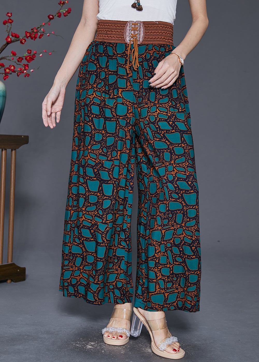 Green Print Chiffon Wide Leg Pants Draping Fall