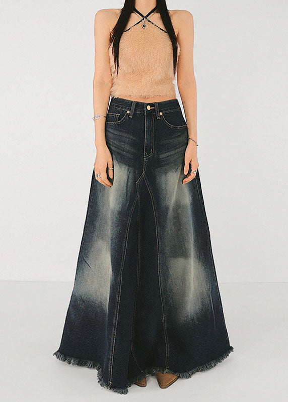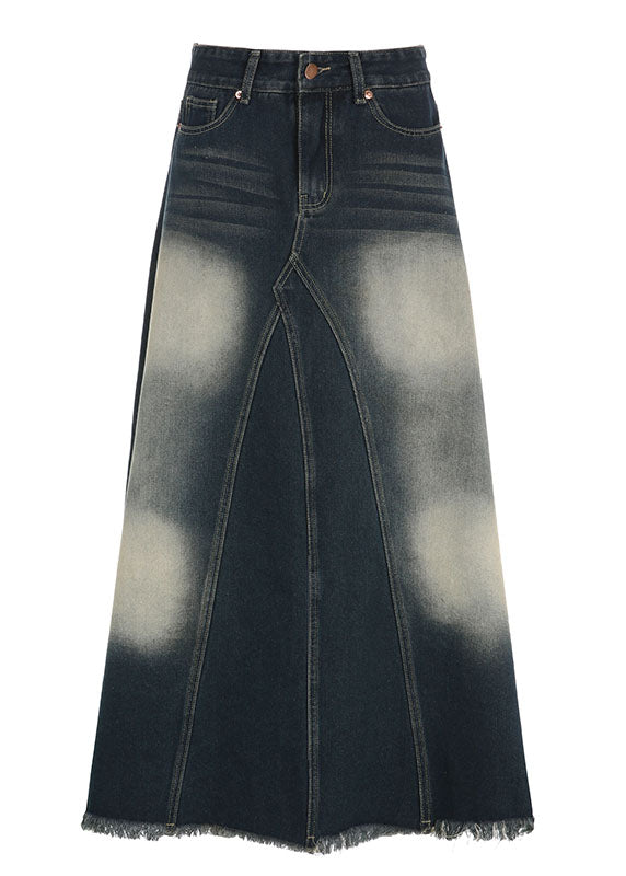 Boutique Blue Pockets Patchwork High Waist Denim Maxi Skirt Summer