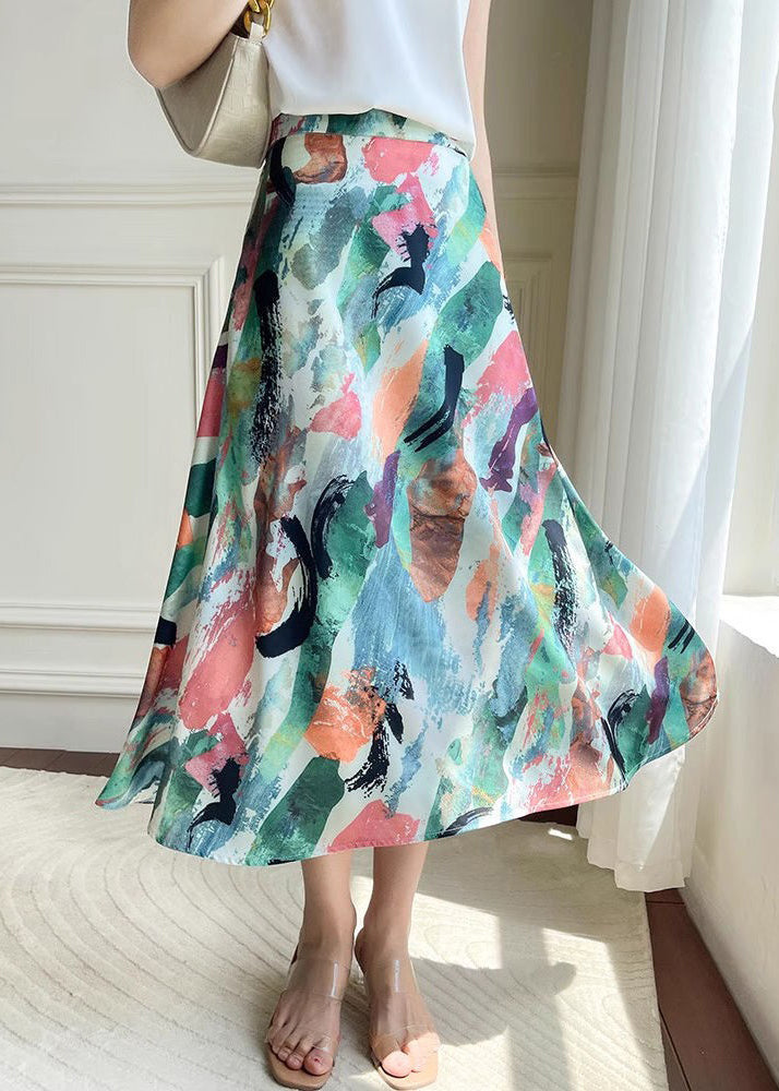Loose Green Print High Waist Silk Skirt Summer