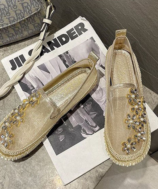 Gold Penny Loafers Breathable Mesh Retro Splicing Floral Zircon