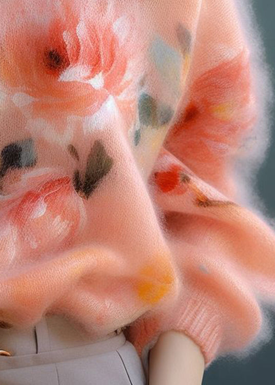 New Pink O Neck Thick Print cotton blend Sweater Fall