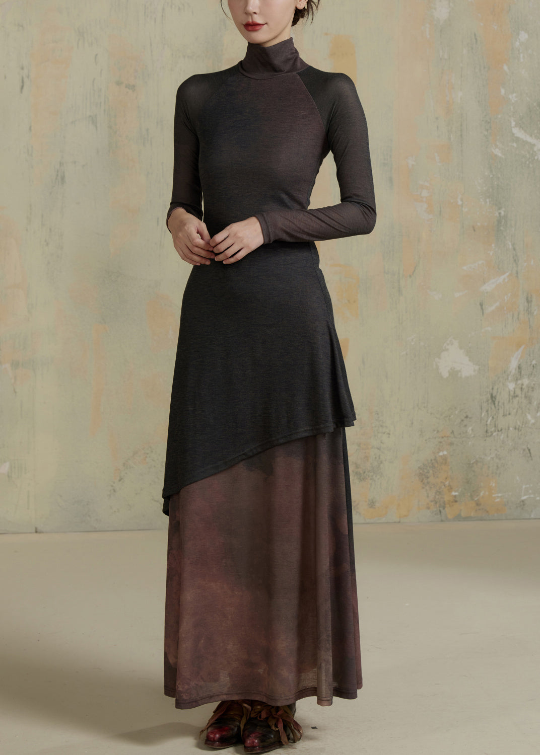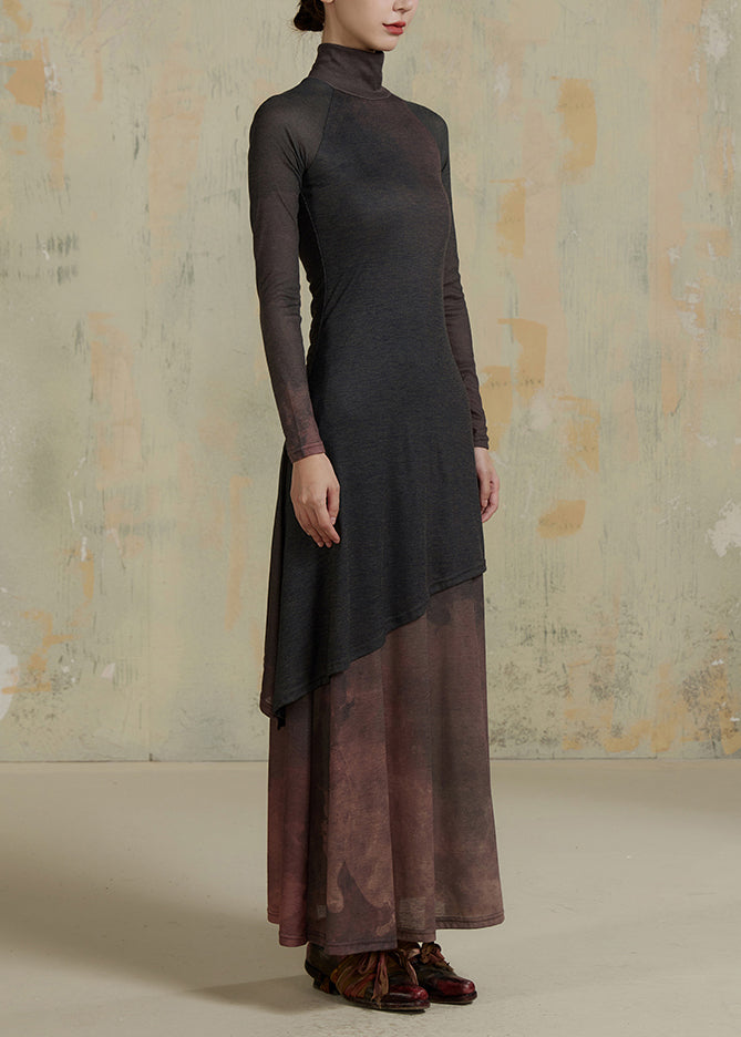 Slim Fit Yellow Gradient Hign Neck Patchwork Cotton Robe Dresses Fall