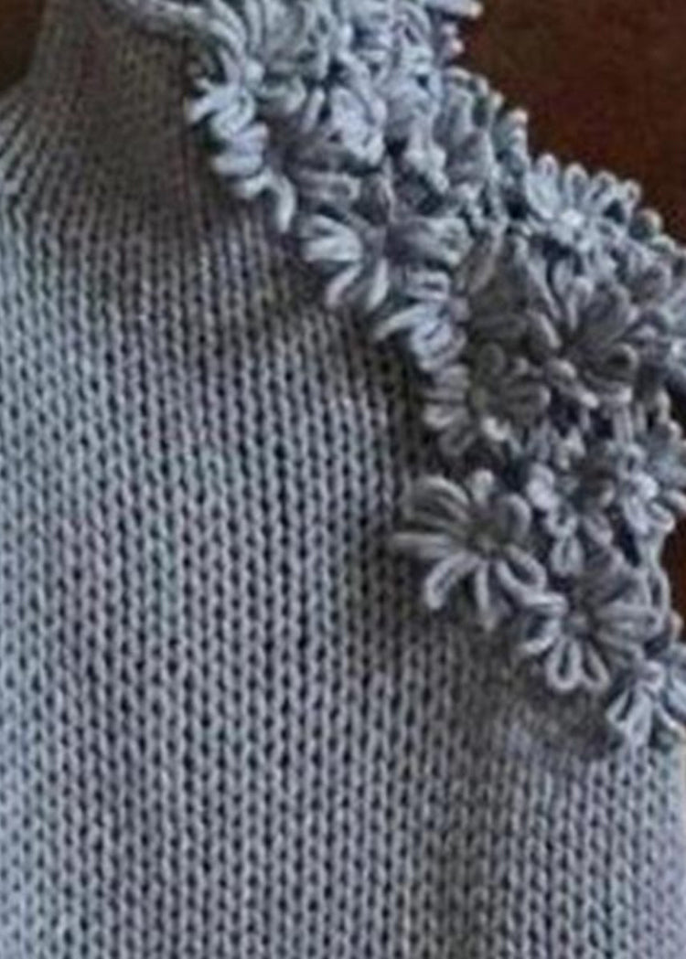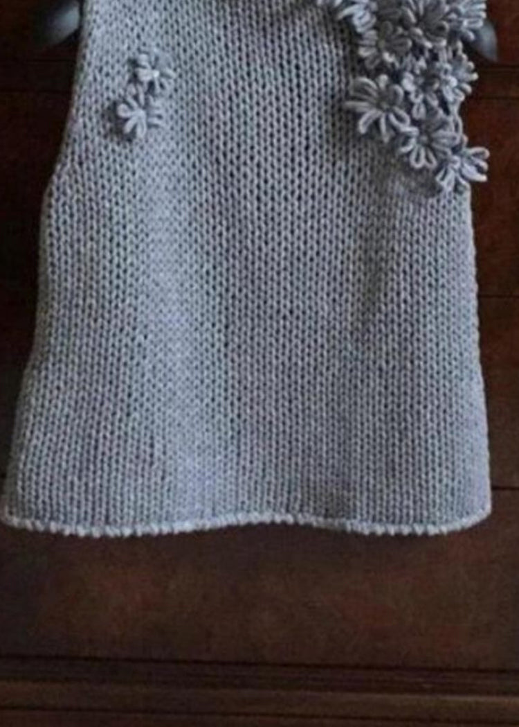 Style Grey Hign Neck Floral Knit Vest Sleeveless