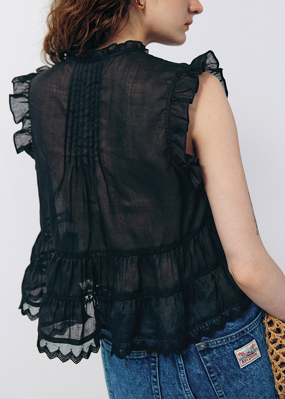French White V Neck Ruffled Linen Blouse Top Summer