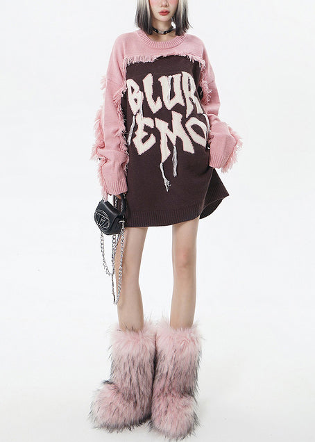 Italian Brown Embroidered Patchwork Tasseled Long Sweaters Winter