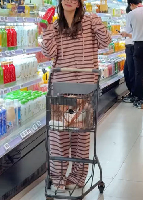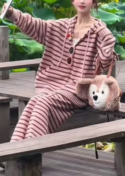 Striped Black Hooded Zippered Knit Two Pieces Set Fall