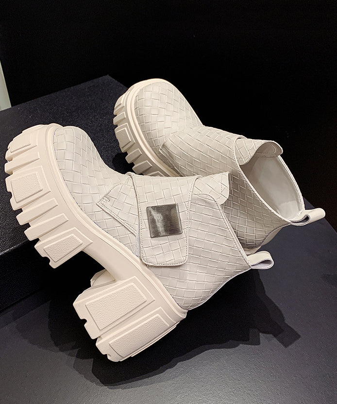 Stylish Yellow Cowhide Leather Chunky Heel Splicing Ankle Boots