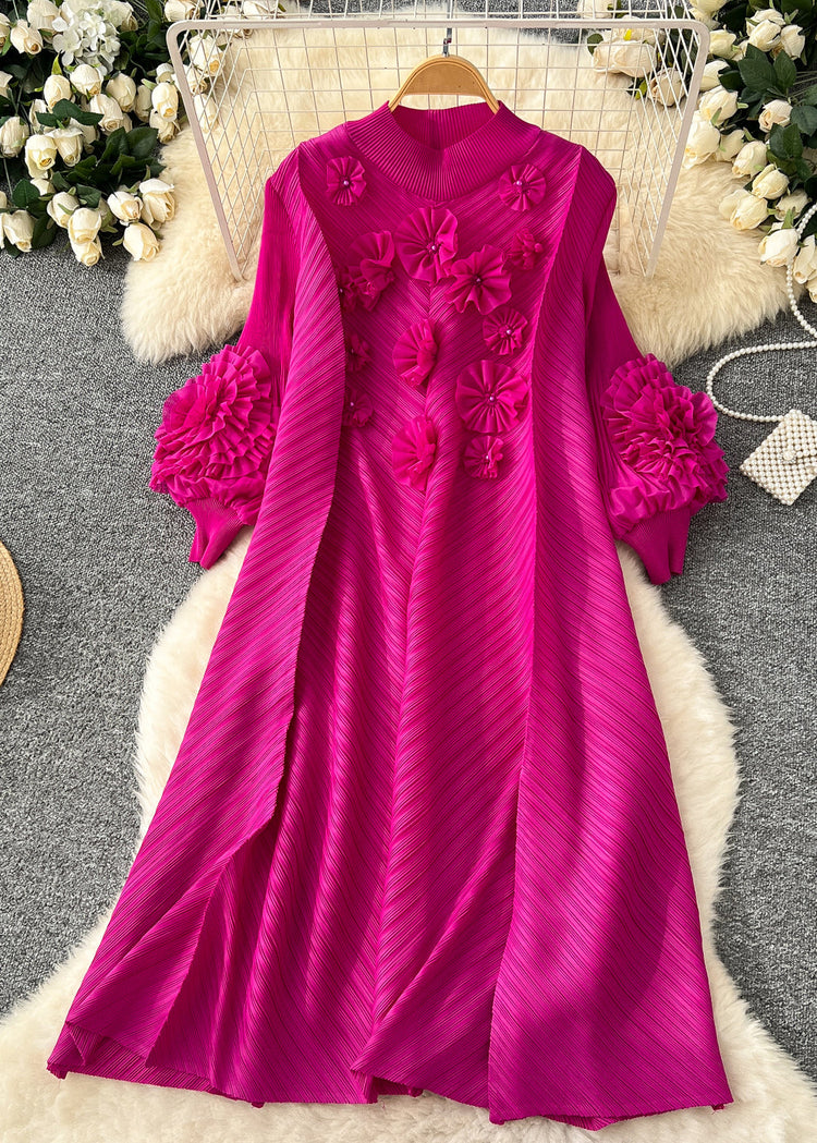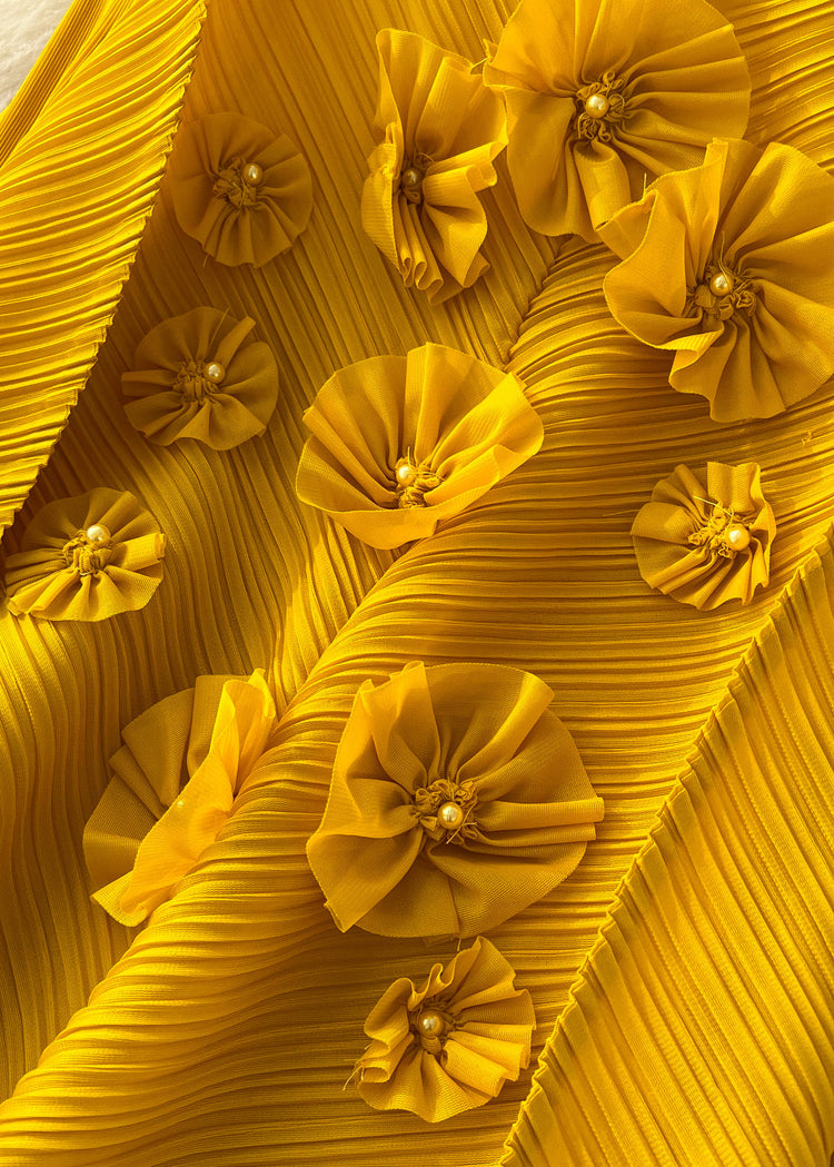 Boutique Yellow Oversized Three-dimensional Floral Long Dress Lantern Sleeve