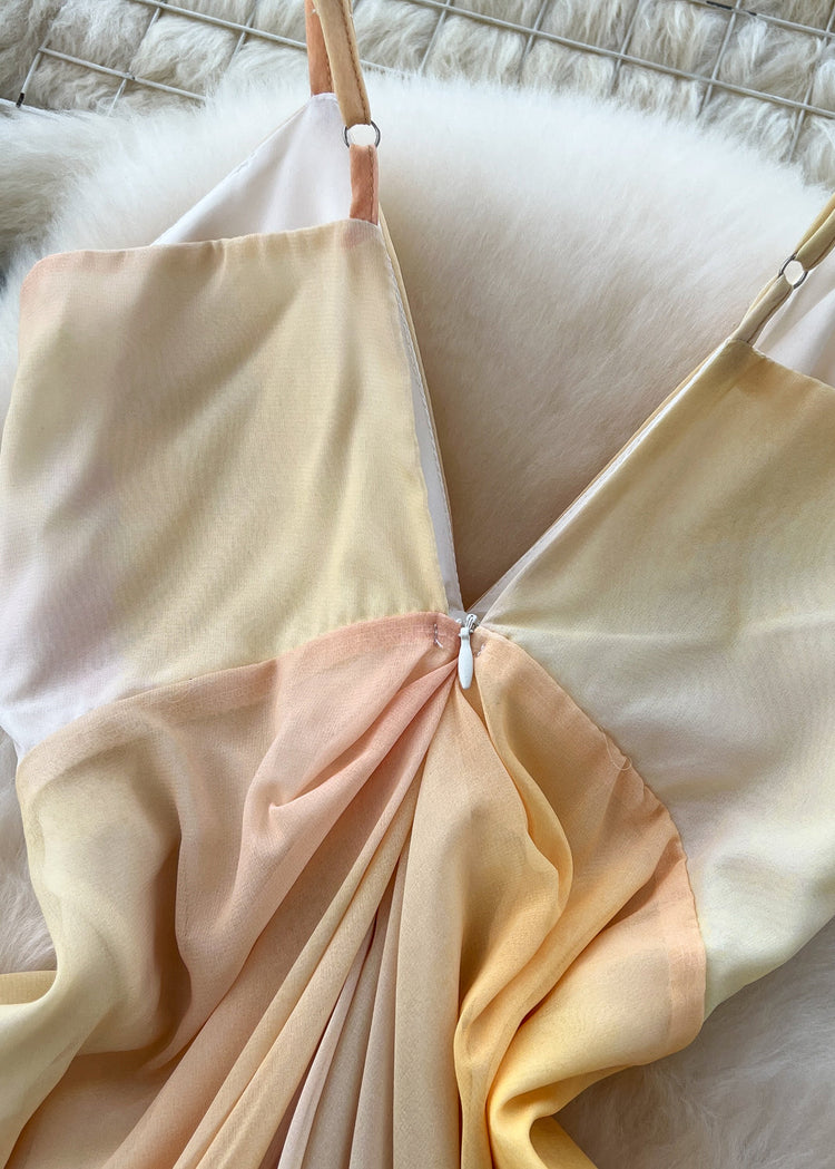 Classy Yellow Tie Dye Chiffon Sundress Summer