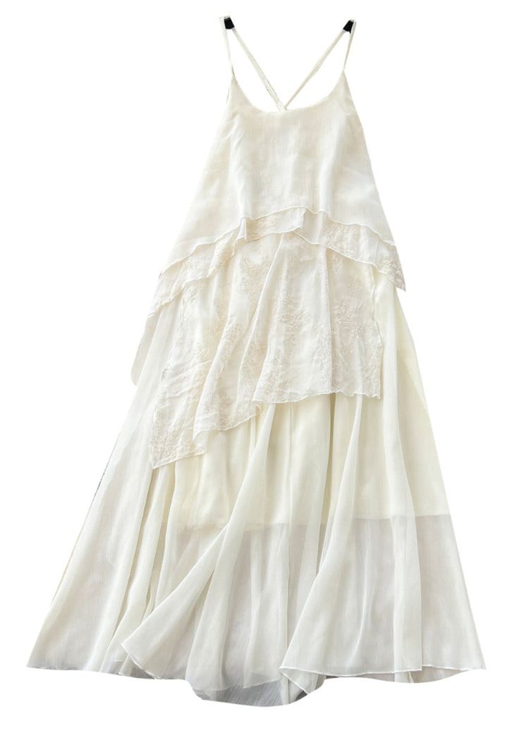 Women White Patchwork Lace Spaghetti Strap Dress Summer