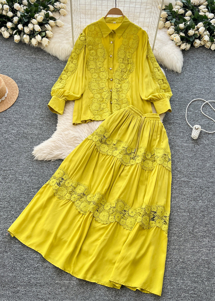 Yellow Patchwork Lace 2 Piece Outfit Exra Large Hem Spring