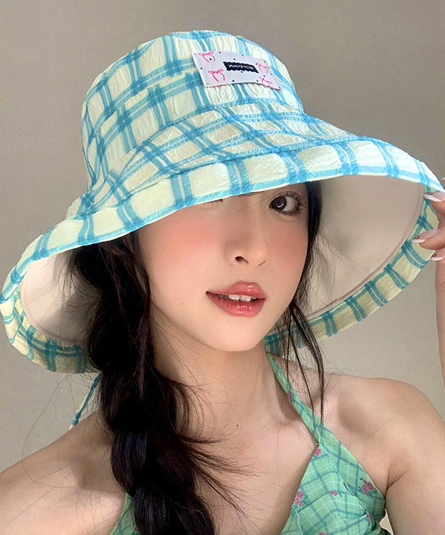 Chic Green Plaid Lace Up Versatile Bucket Hat