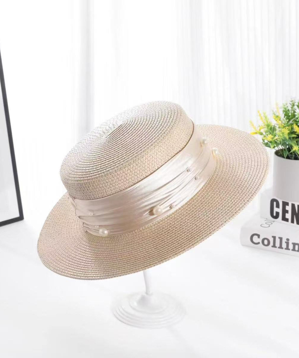 Fashion Fine Khaki Nail Bead Straw Woven Cloche Hat