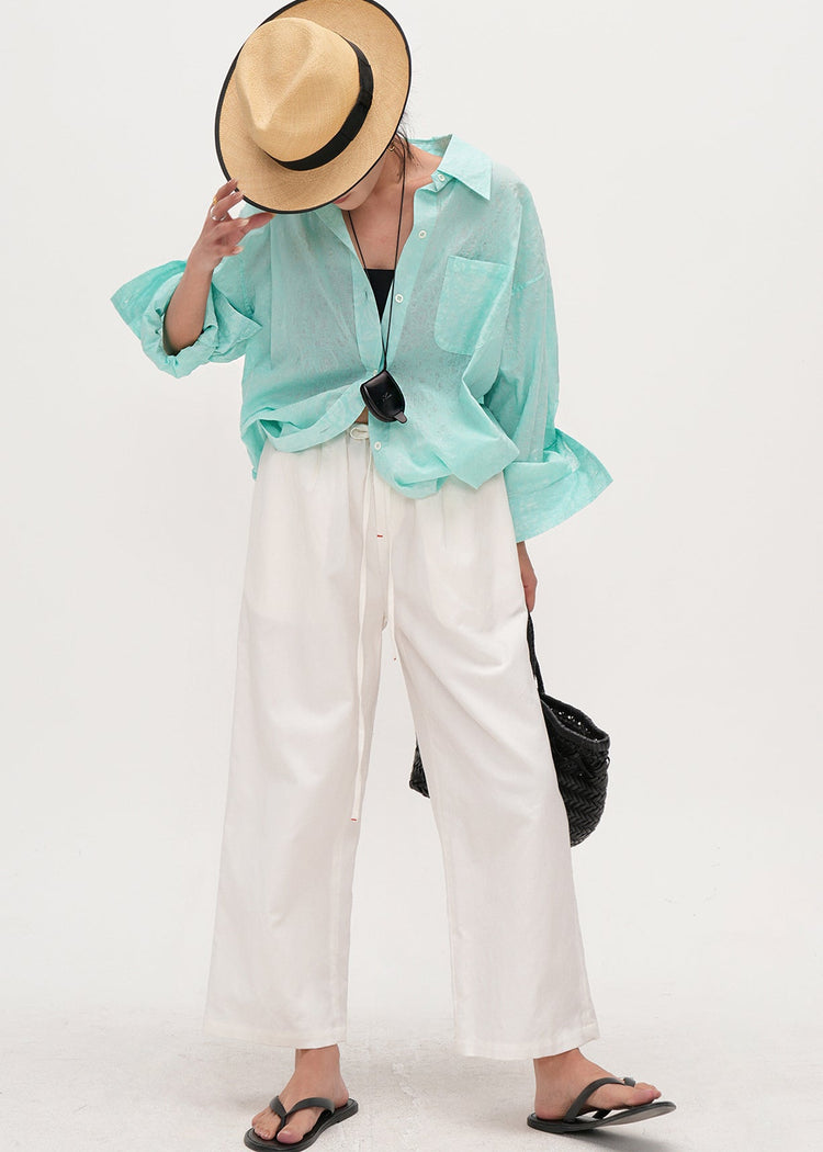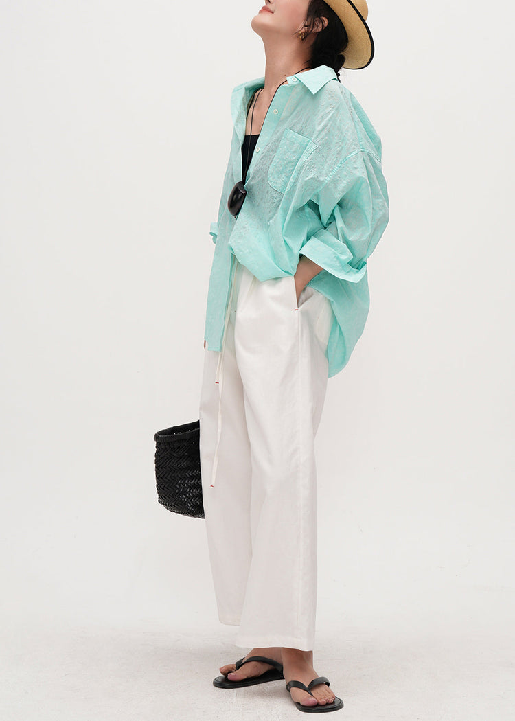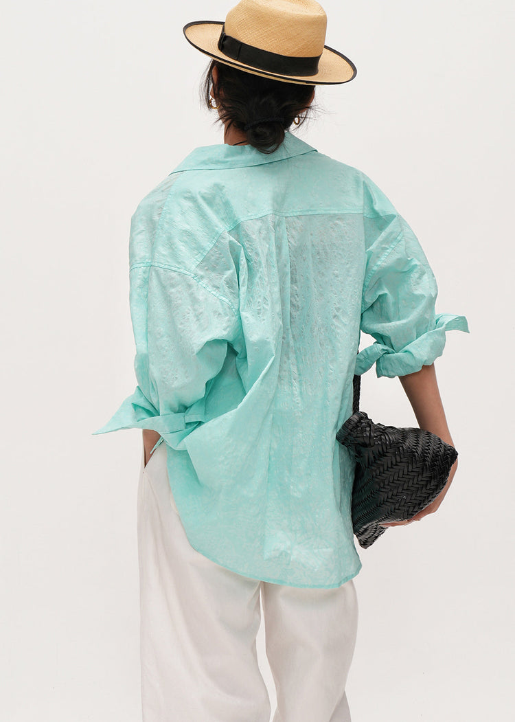 Natural Lake Green Oversized Cotton UPF 50+ Blouse Top Summer