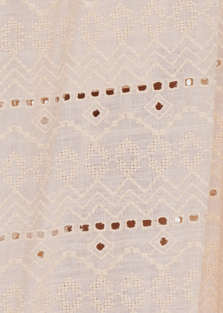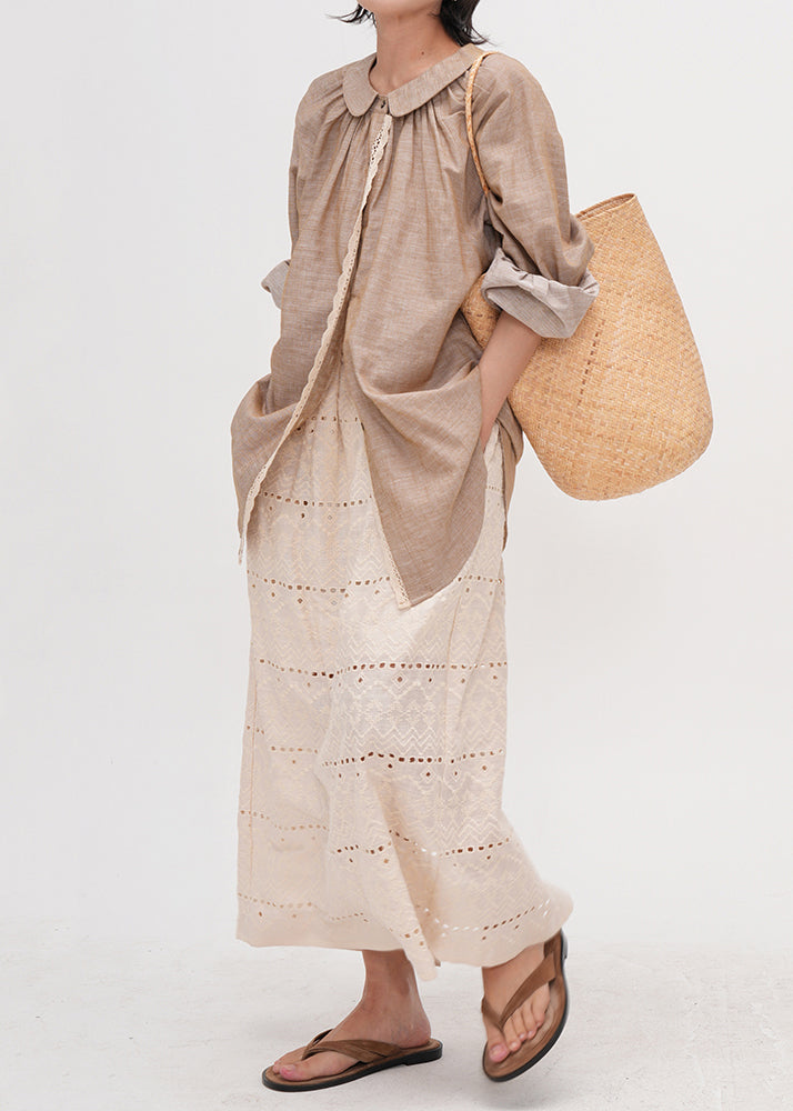 Style Beige Embroidered Hollow Out Side Open Cotton Skirts Summer