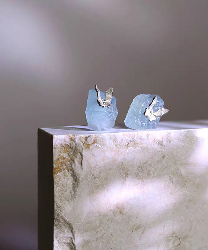 DIY Light Blue Sterling Silver Gem Stone Butterfly Stud Earrings