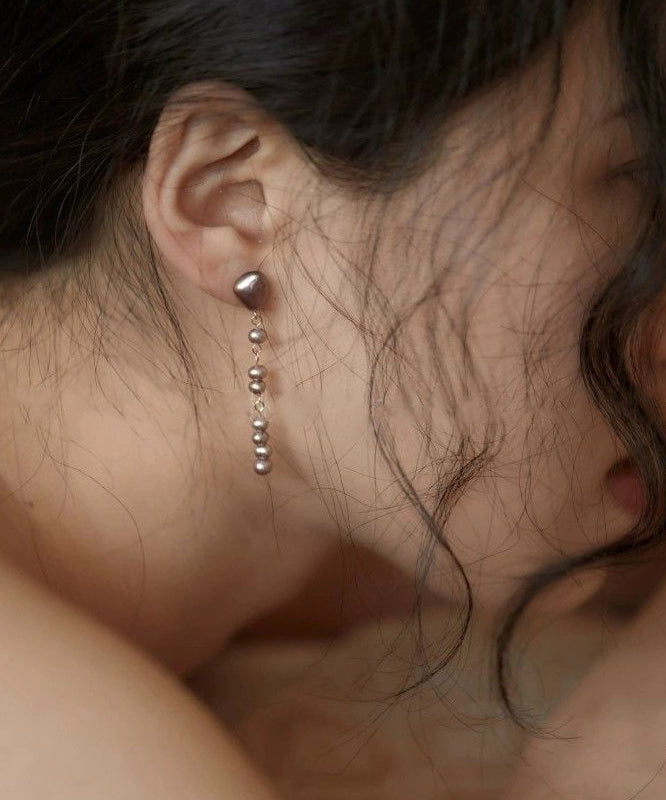 Modern Purple Metal Asymmetrical Pearl Drop Earrings