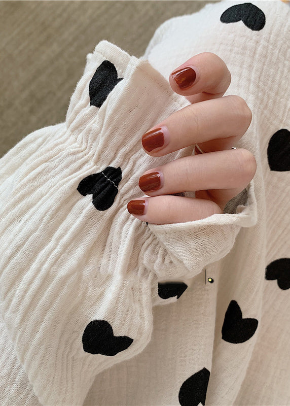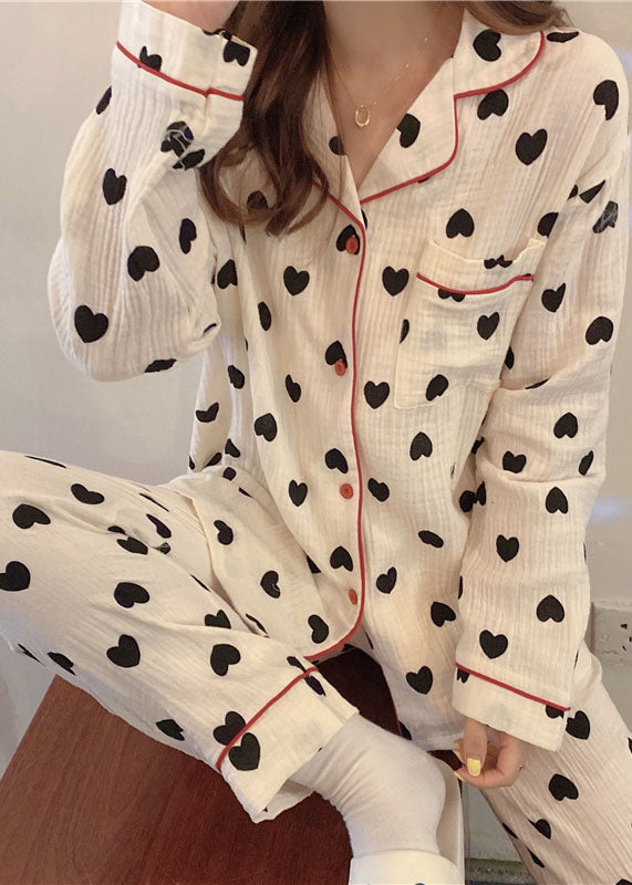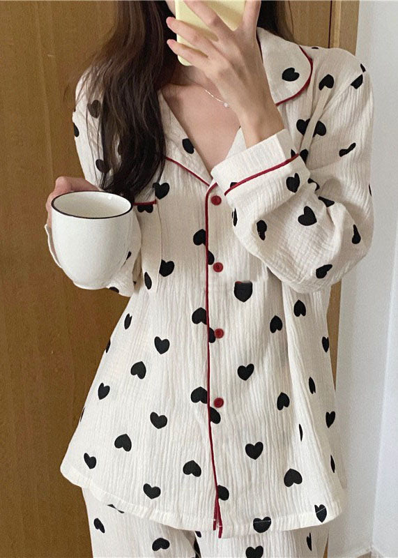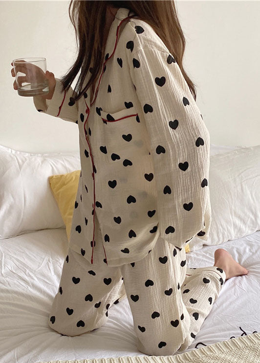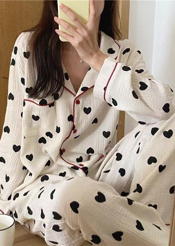 Boho White Oversized Love Print Cotton Womens Pajama Sets Fall