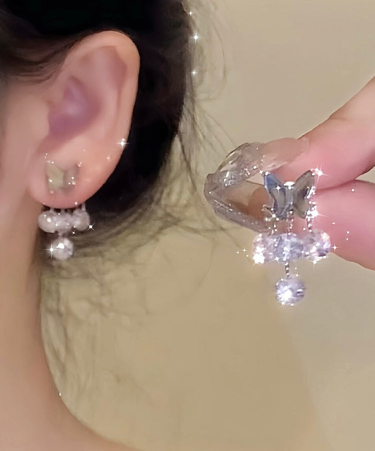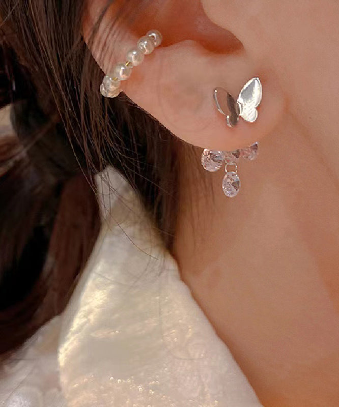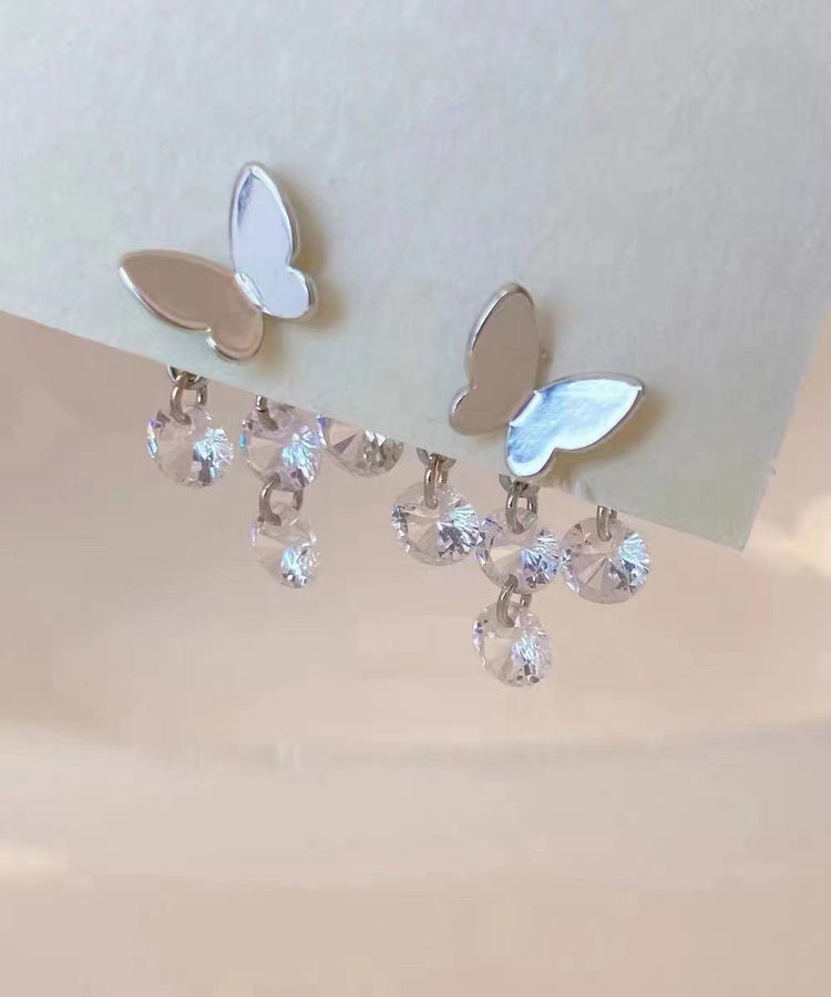 Original Design Silk Metal Zircon Butterfly Stud Earrings