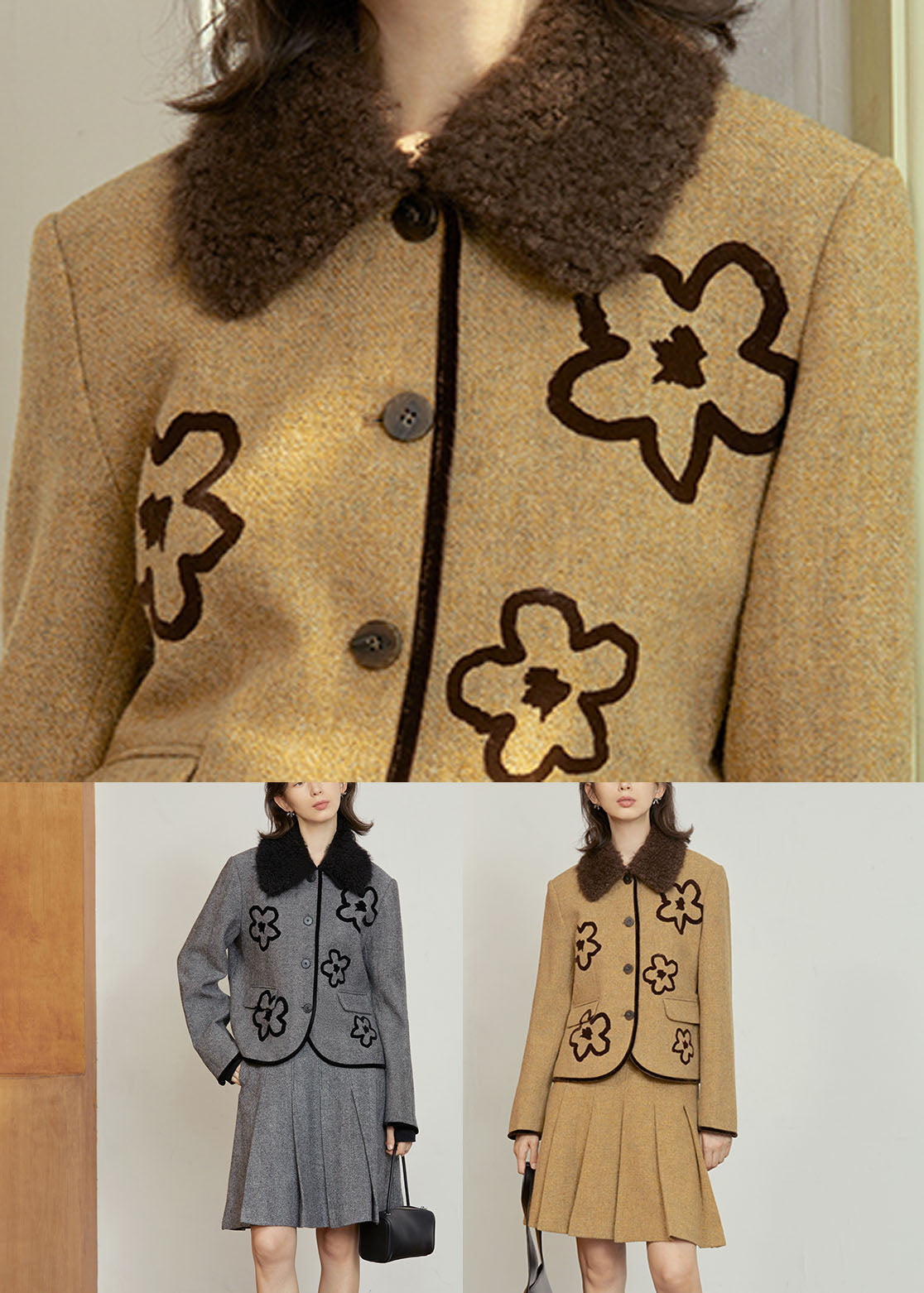Ginger Peter Pan Collar Woolen Coat And Skirts Two Pieces Set Long Sleeve