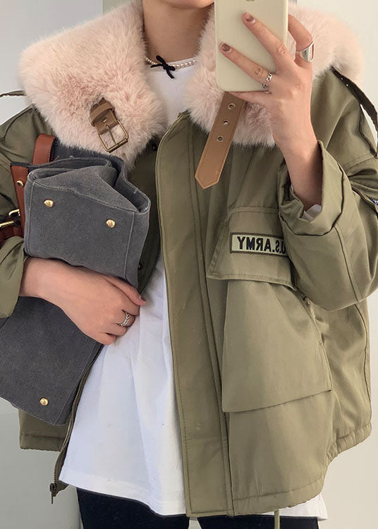 Green Fox collar Pockets Fine Cotton Filled Winter Coat