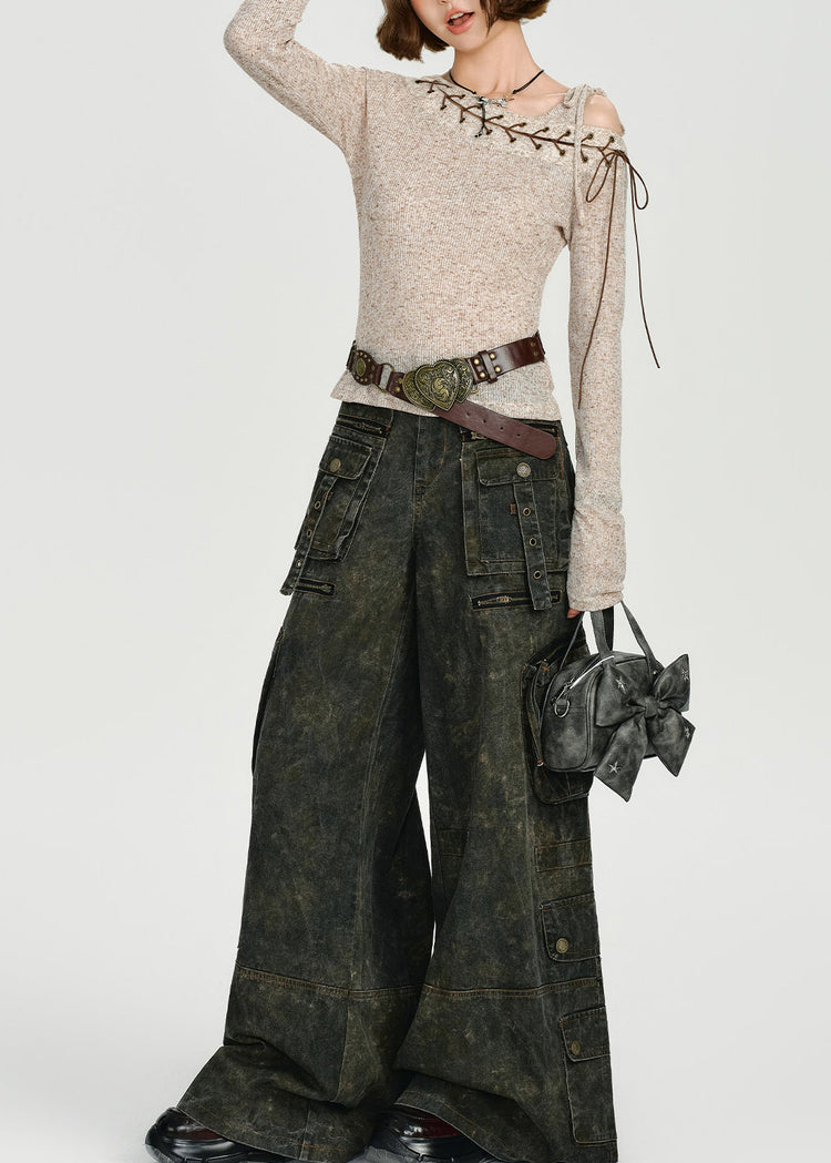 DIY Beige One Shoulder Cross Strap Knit Tops Spring