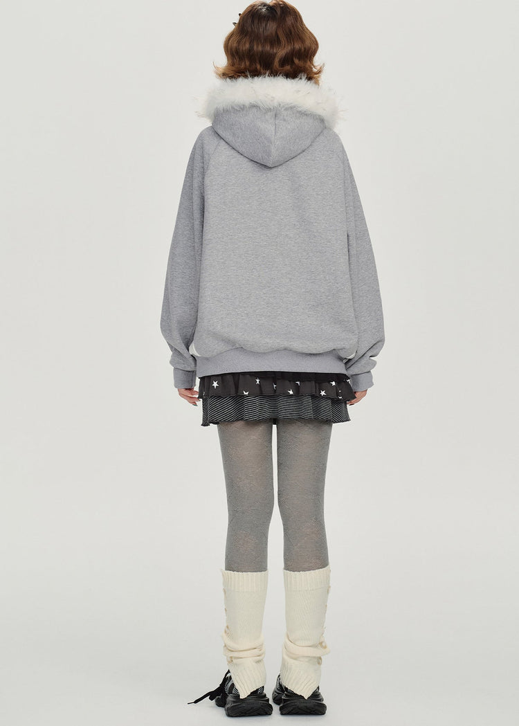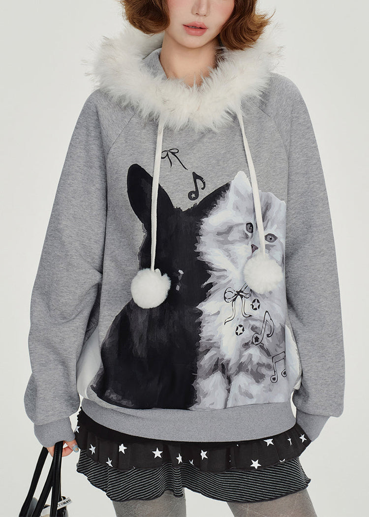 Italian Grey Hooded Print Cotton Pullover Streetwear Winter