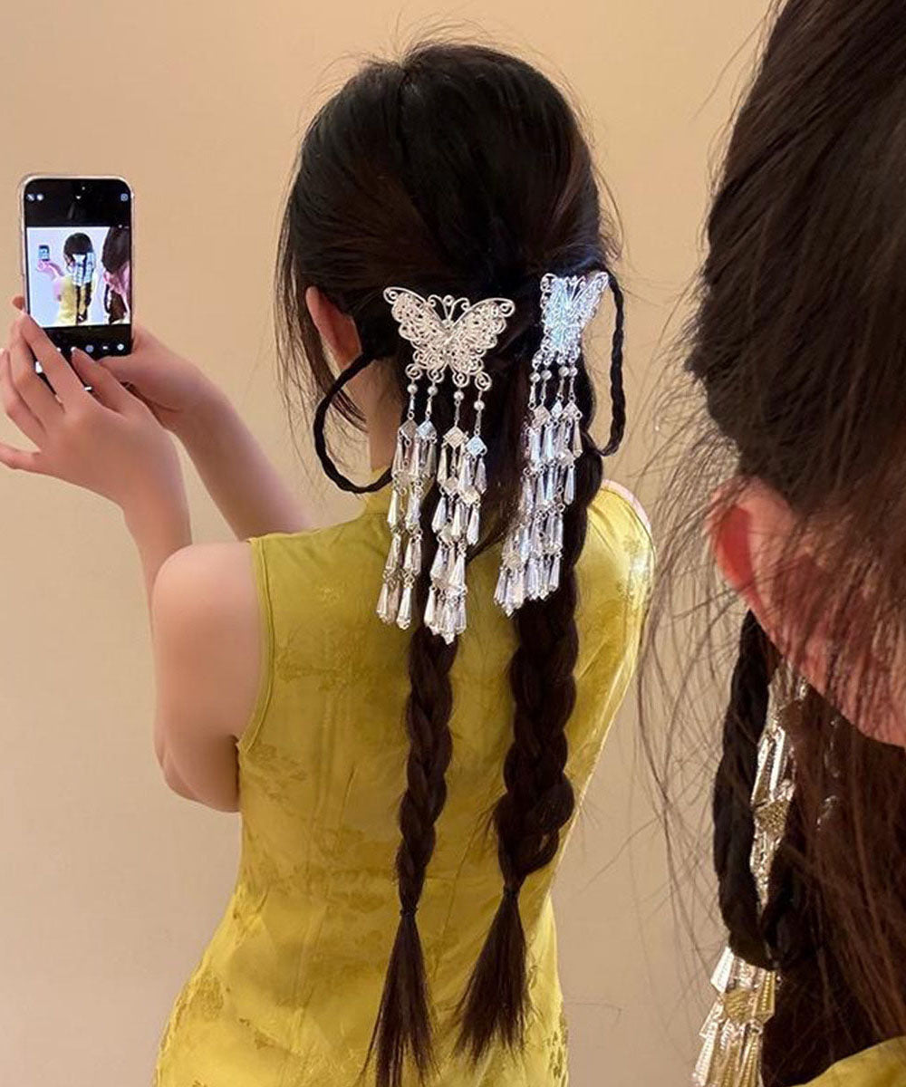 Original Design Silk Sterling Silver Pearl Butterfly Tassel Hairpin