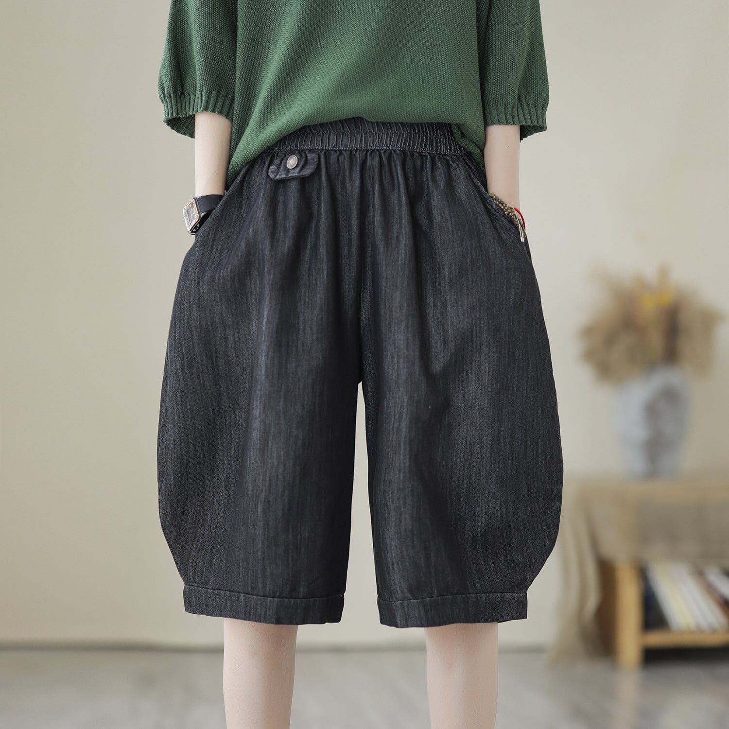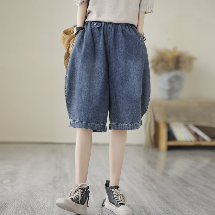 Loose Solid Cotton Casual Denim Shorts