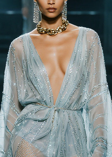 Fitted Blue Sequins Low High Design Tulle UPF 50+Cardigans Summer