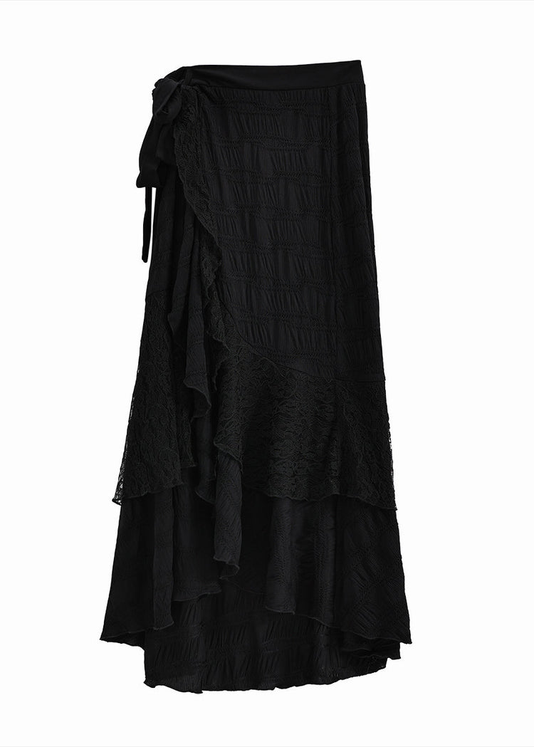 Beautiful Black Asymmetrical Patchwork Cotton Skirts Fall