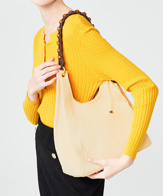 Modern Khaki Jacquard Large Capacity Cotton Shoulder Bags